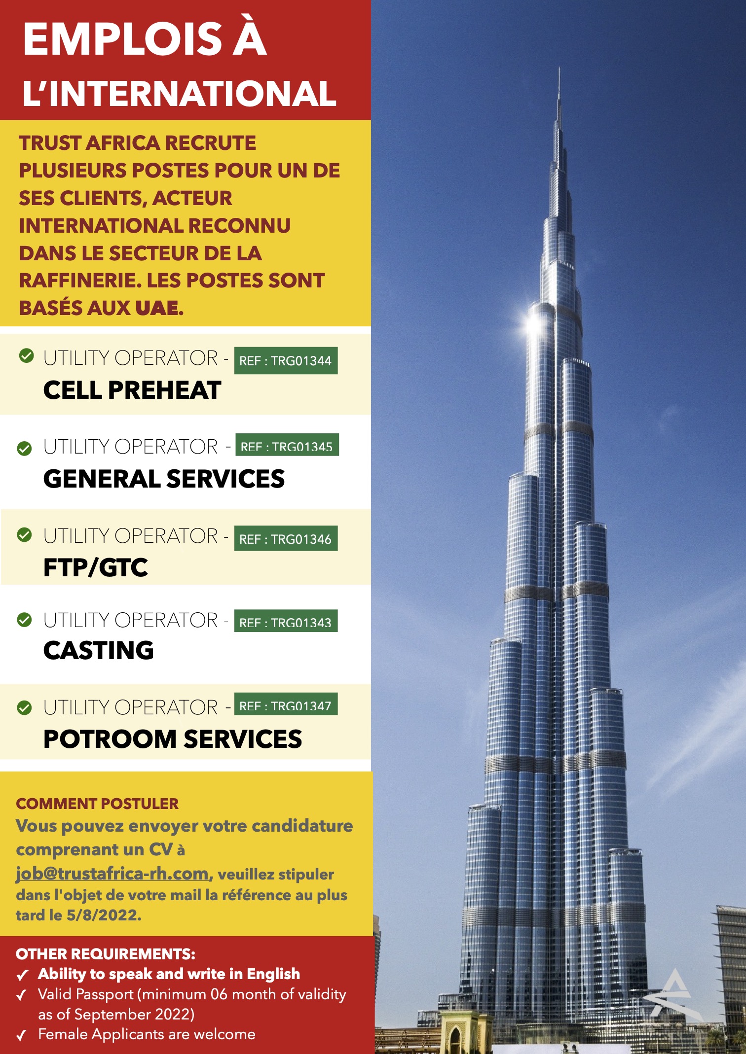 > Trust Africa recrute plusieurs postes pour un de ses clients, acteur international reconnu dans le secteur de la raffinerie