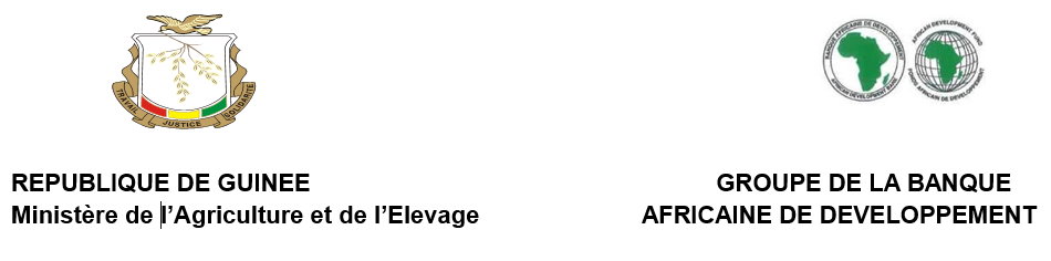 Le Gouvernement de la République de Guinée a reçu un financement du Groupe de la Banque Africaine de Développement (BAD), afin de couvrir le coût du Projet d’Appui à la Transformation de l’Agriculture Guinéenne et de l’Entreprenariat Agricole des Jeunes (PATAG-EAJ), et a l’intention d’utiliser une partie des sommes accordées pour financer le contrat de service de contrôle et la supervision des Travaux d’Aménagement de 158 ha des domaines agricoles rizicoles et maraichers dans les Préfectures de Boke et Boffa.