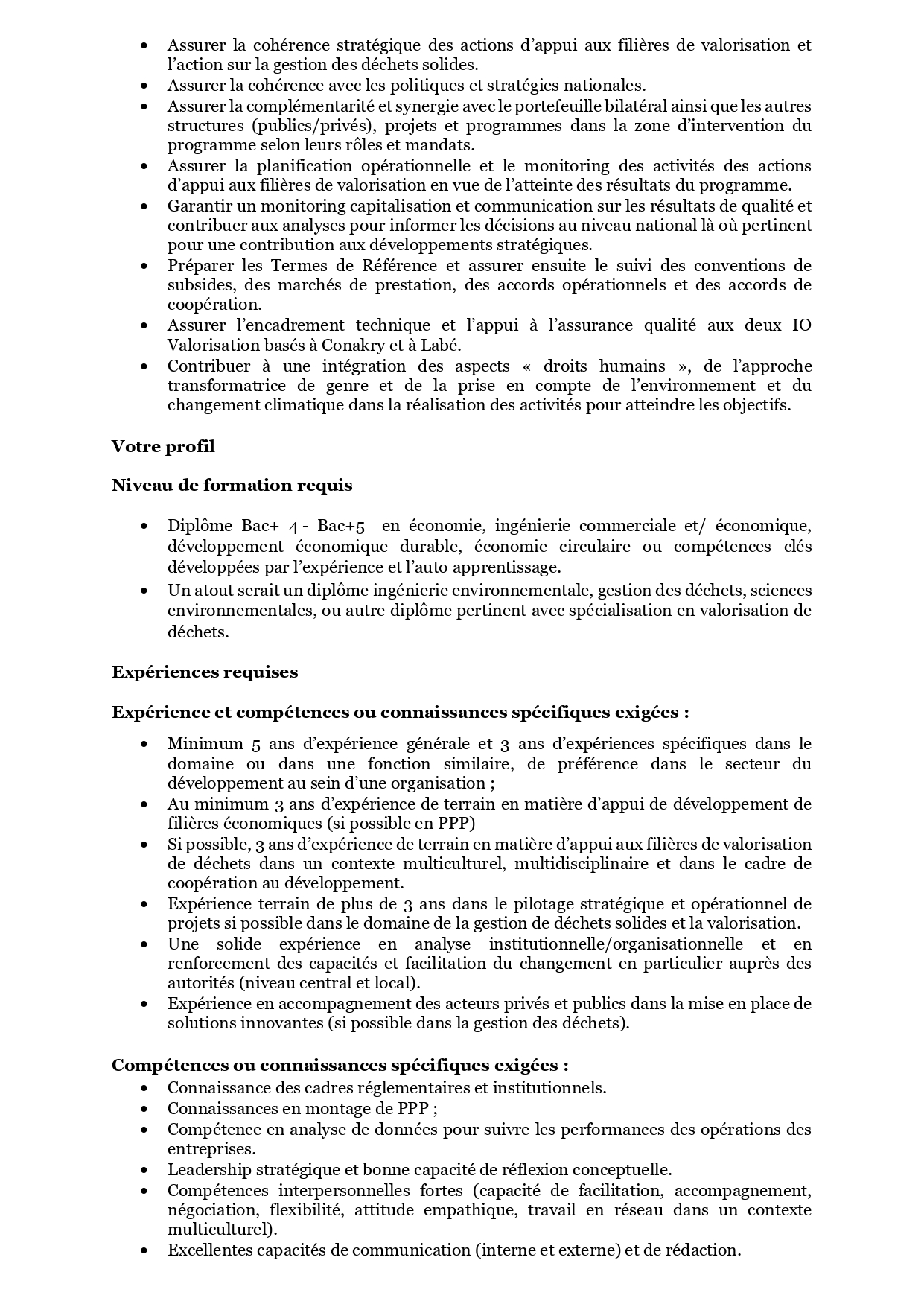 > Avis de Recrutement d'un Project Manager développement des filières de Valorisation de déchets (h/f/x) – Guinée