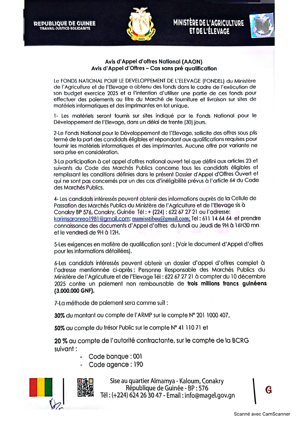 > Avis d'appel d'offres pour le Marché de fourniture et livraison sur sites de matériels informatiques et des imprimantes en lot unique