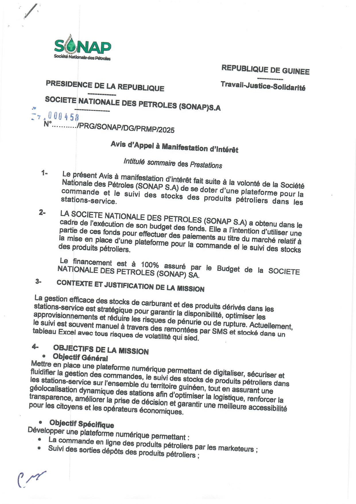 > Avis à manifestation d'intérêt pour le marché relatif à la mise en place d’une plateforme pour la commande el le suivi des stocks des produits pétroliers
