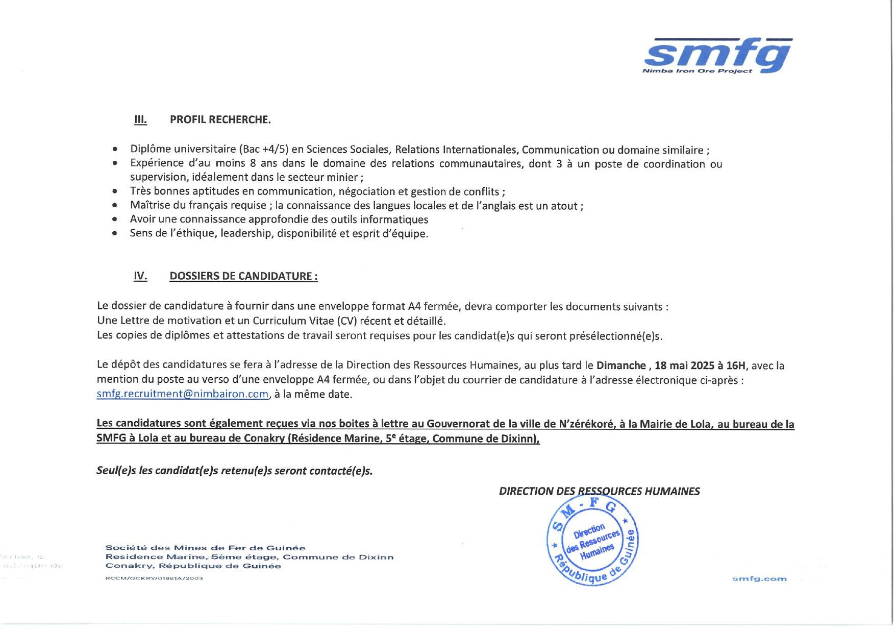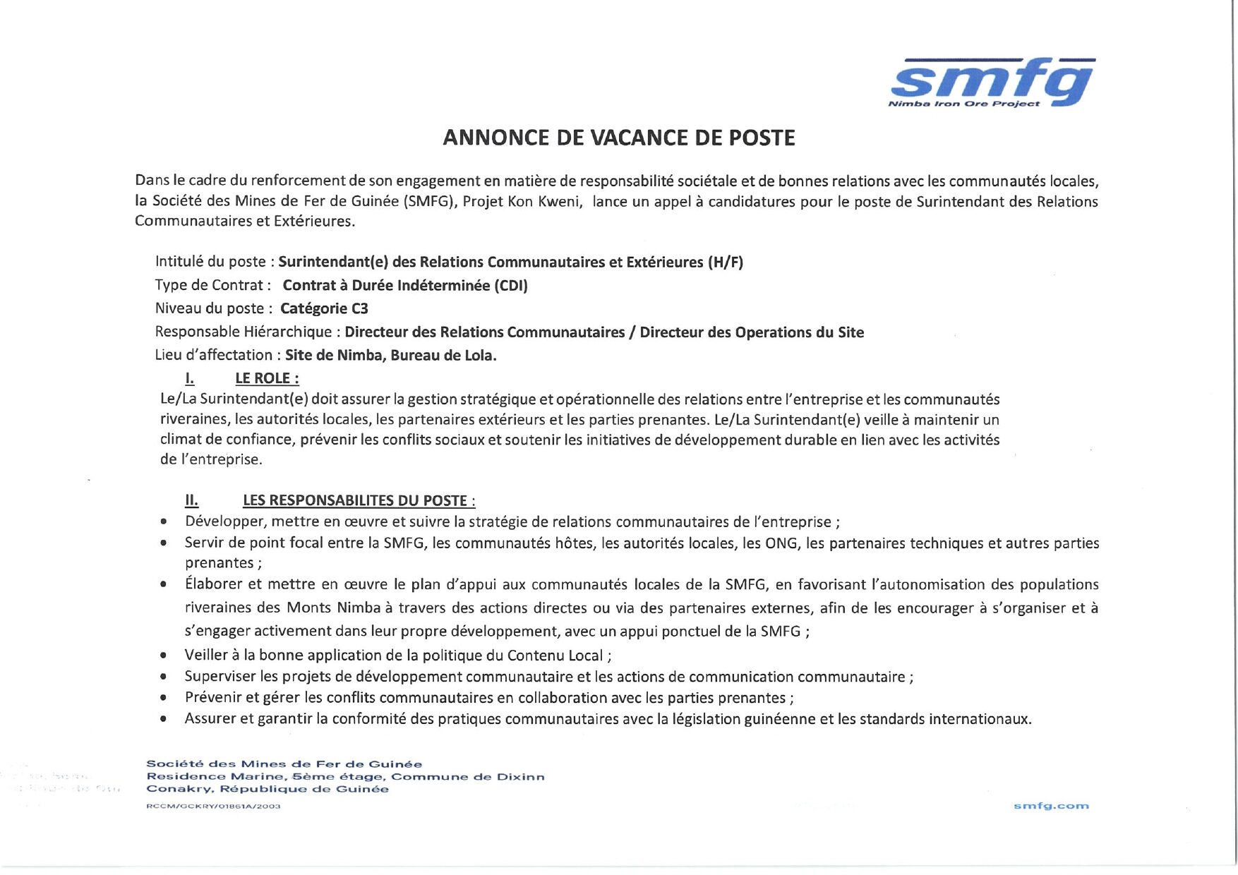 > Avis de recrutement d'un(e) Surintendant(e) des Relations Communautaires et Extérieures (H/F)