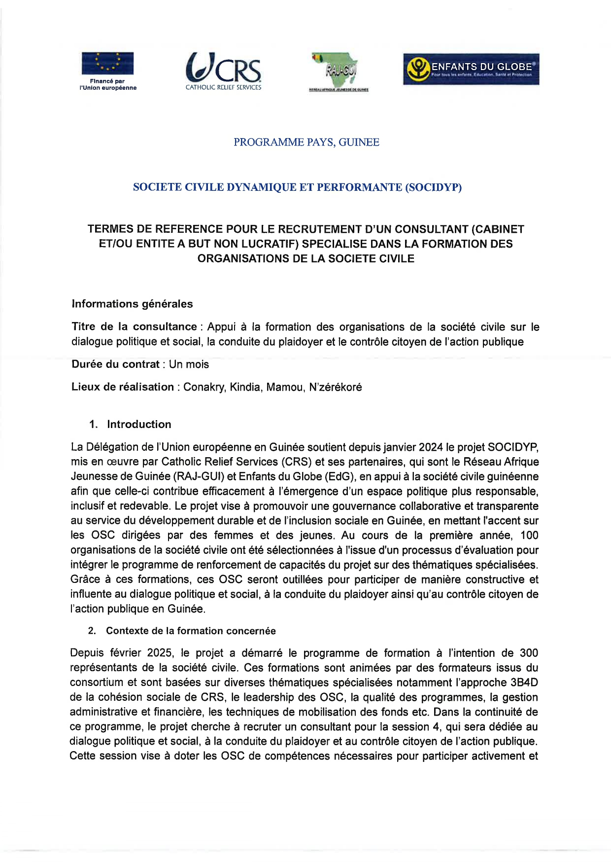 > Avis de Recrutement d'un Consultant (Cabinet et /ou Entite a but non lucratif ) specialisé dans la formation des organisations de la societe civile