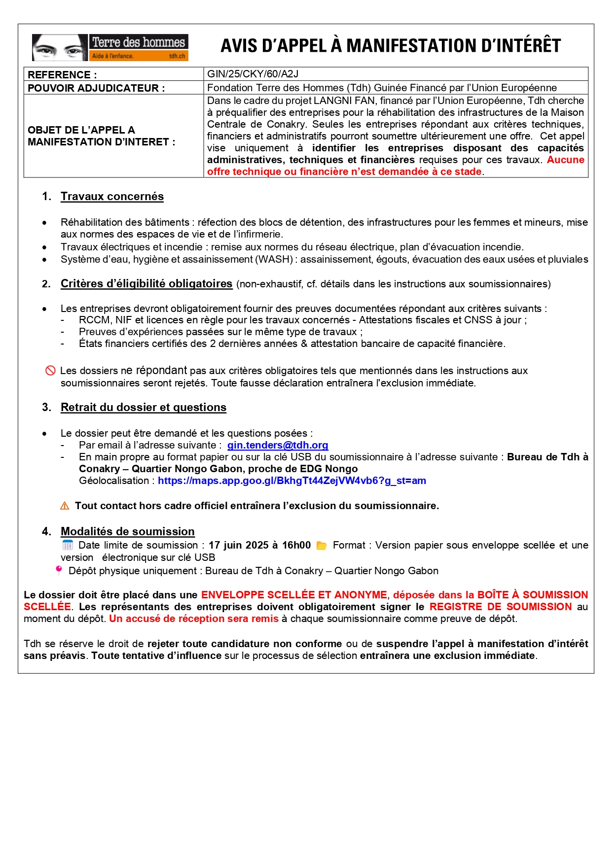 > Avis de relance: la réhabilitation des infrastructures de la Maison Centrale de Conakry.