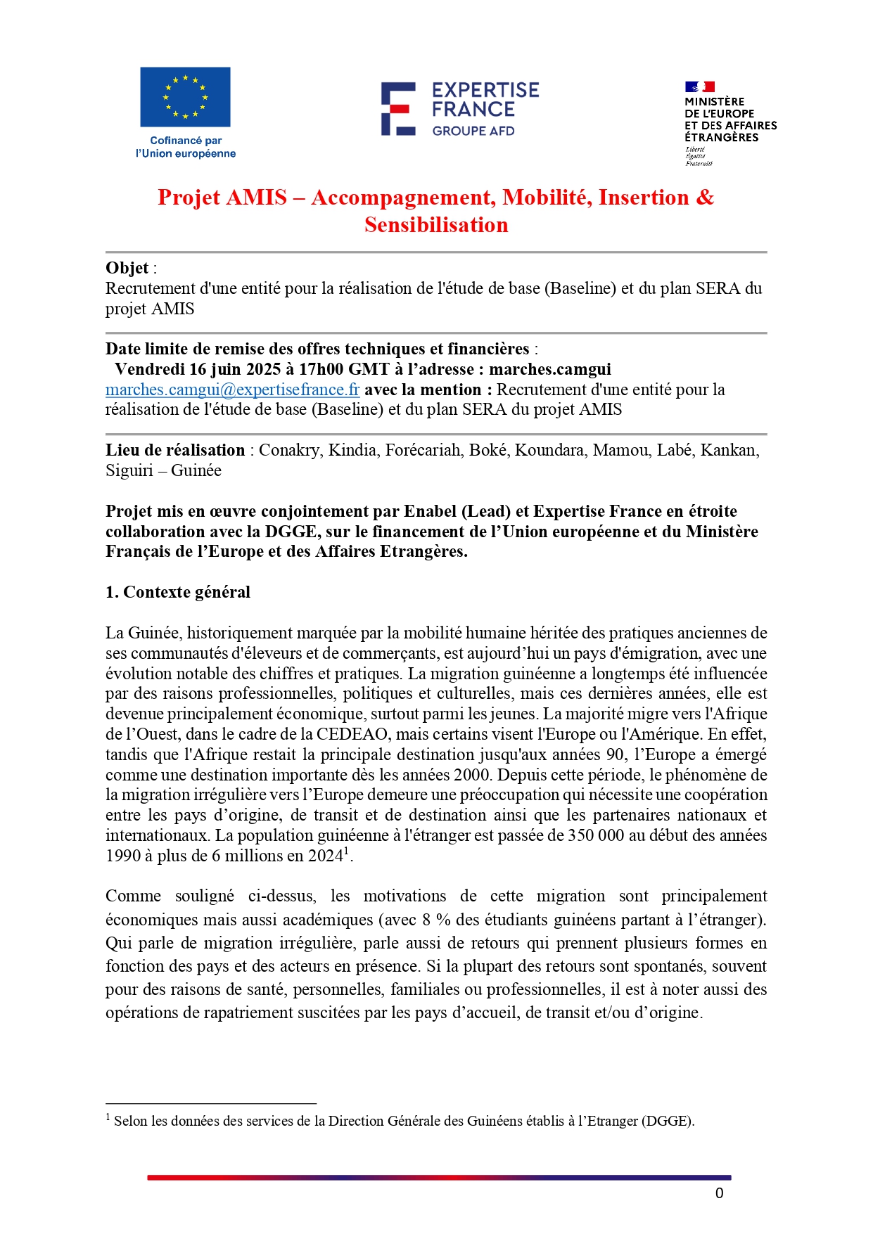 > Avis de Recrutement d'une entité pour la réalisation de l'étude de base (Baseline) et du plan SERA du projet AMIS