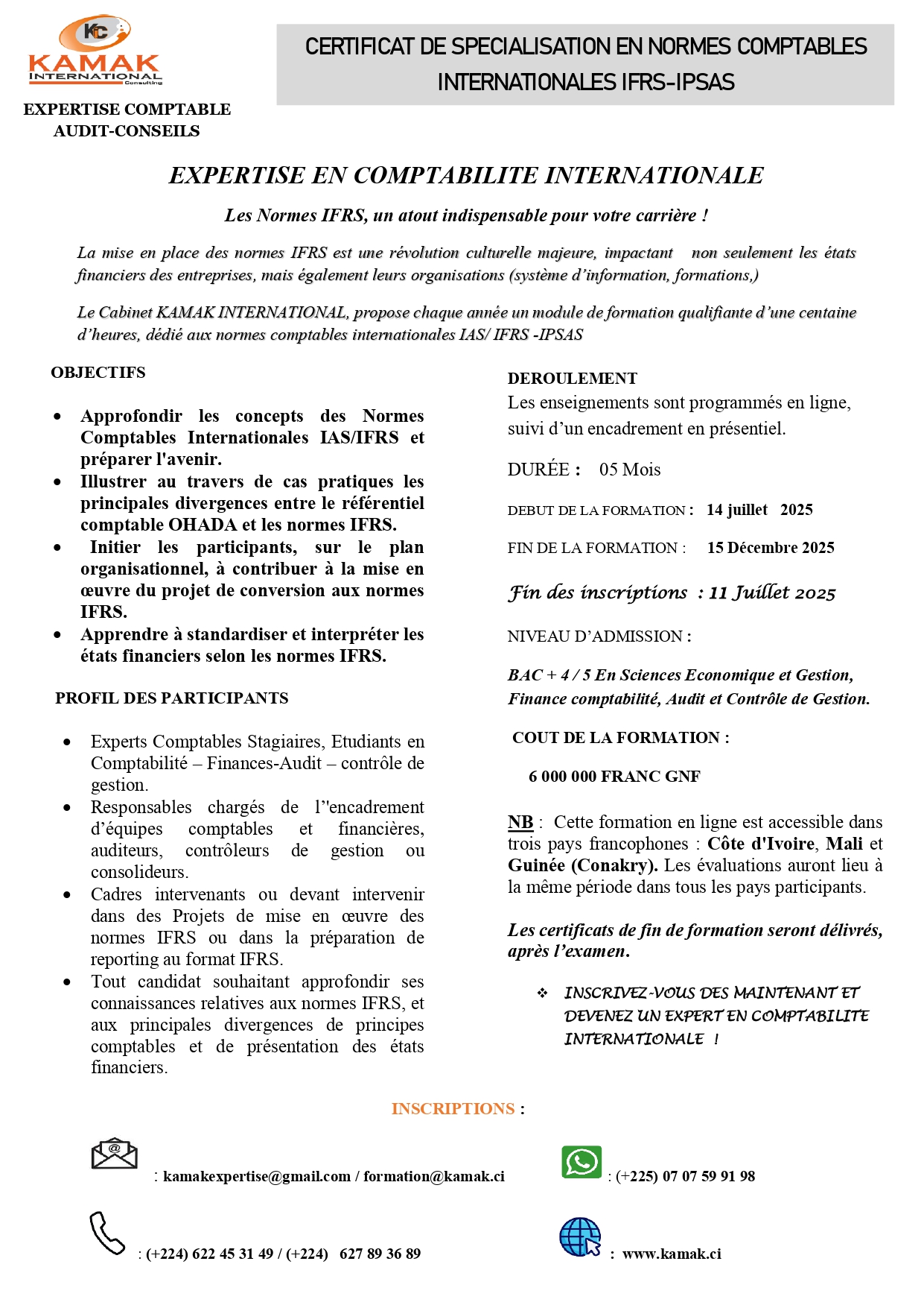 > FORMATION: EXPERTISE EN COMPTABILITE INTERNATIONALE
