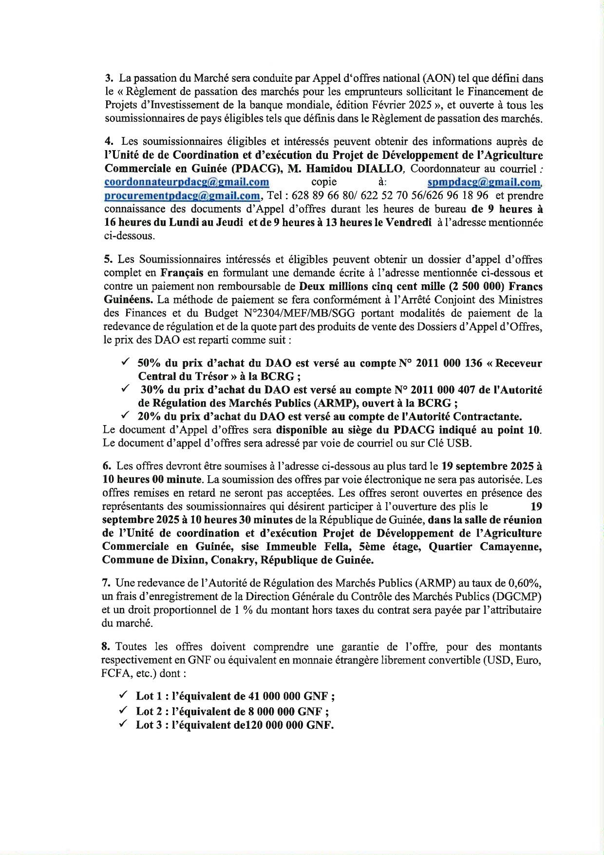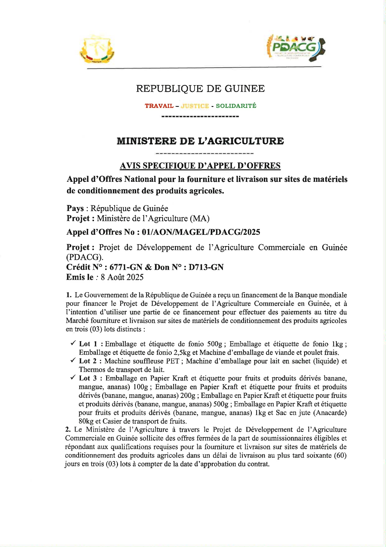 > Appel d’Offres National pour la fourniture et livraison sur sites de matériels de conditionnement des produits agricoles
