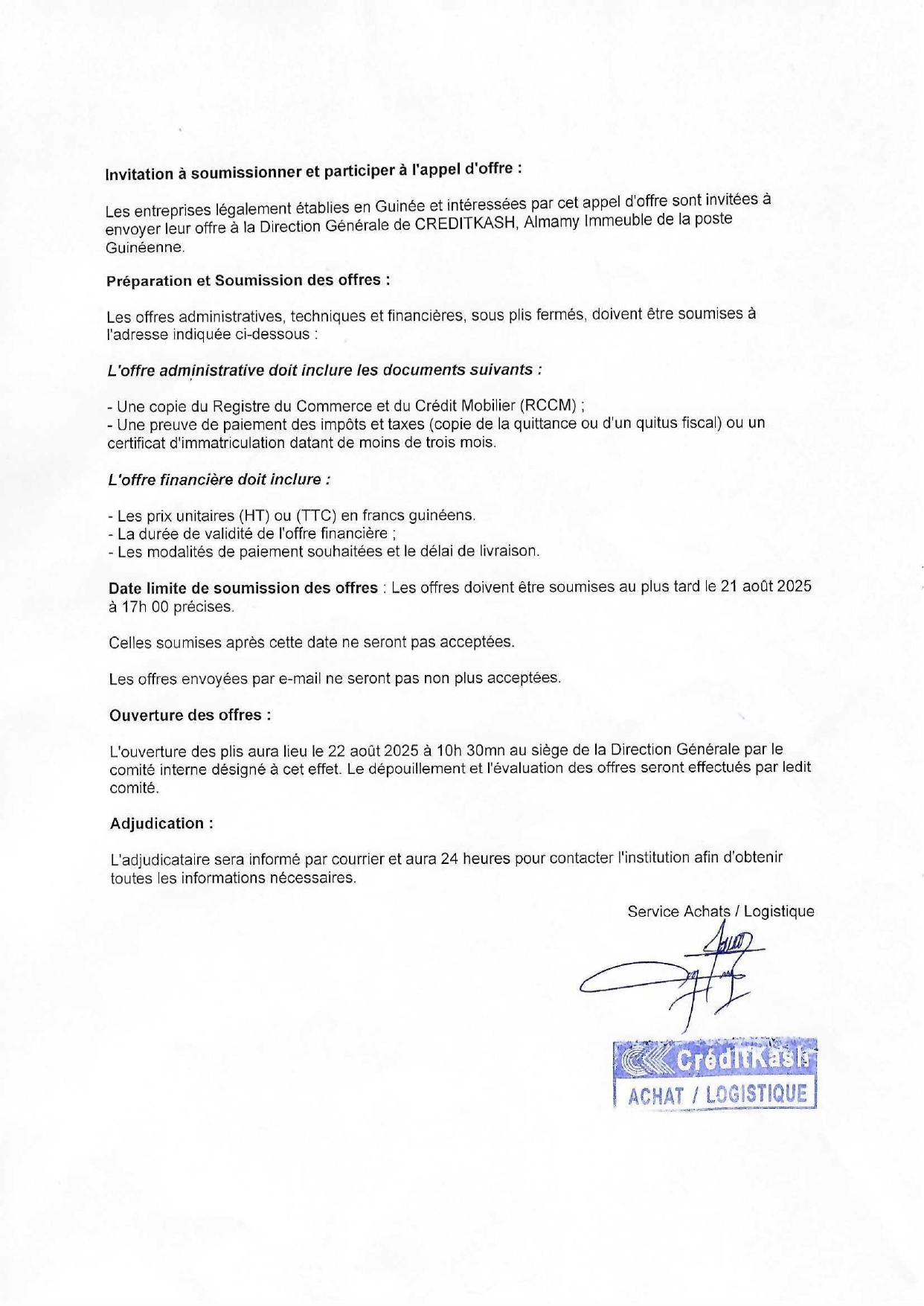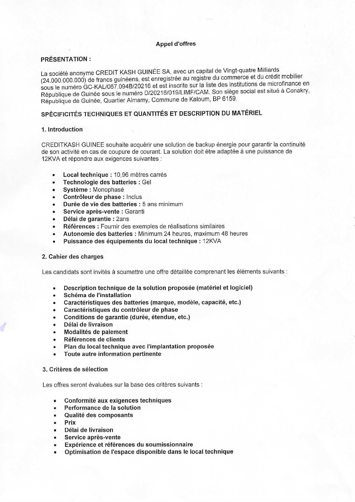 > Avis d'appel d'offres pour l'acquisition d'une solution de Back Energies