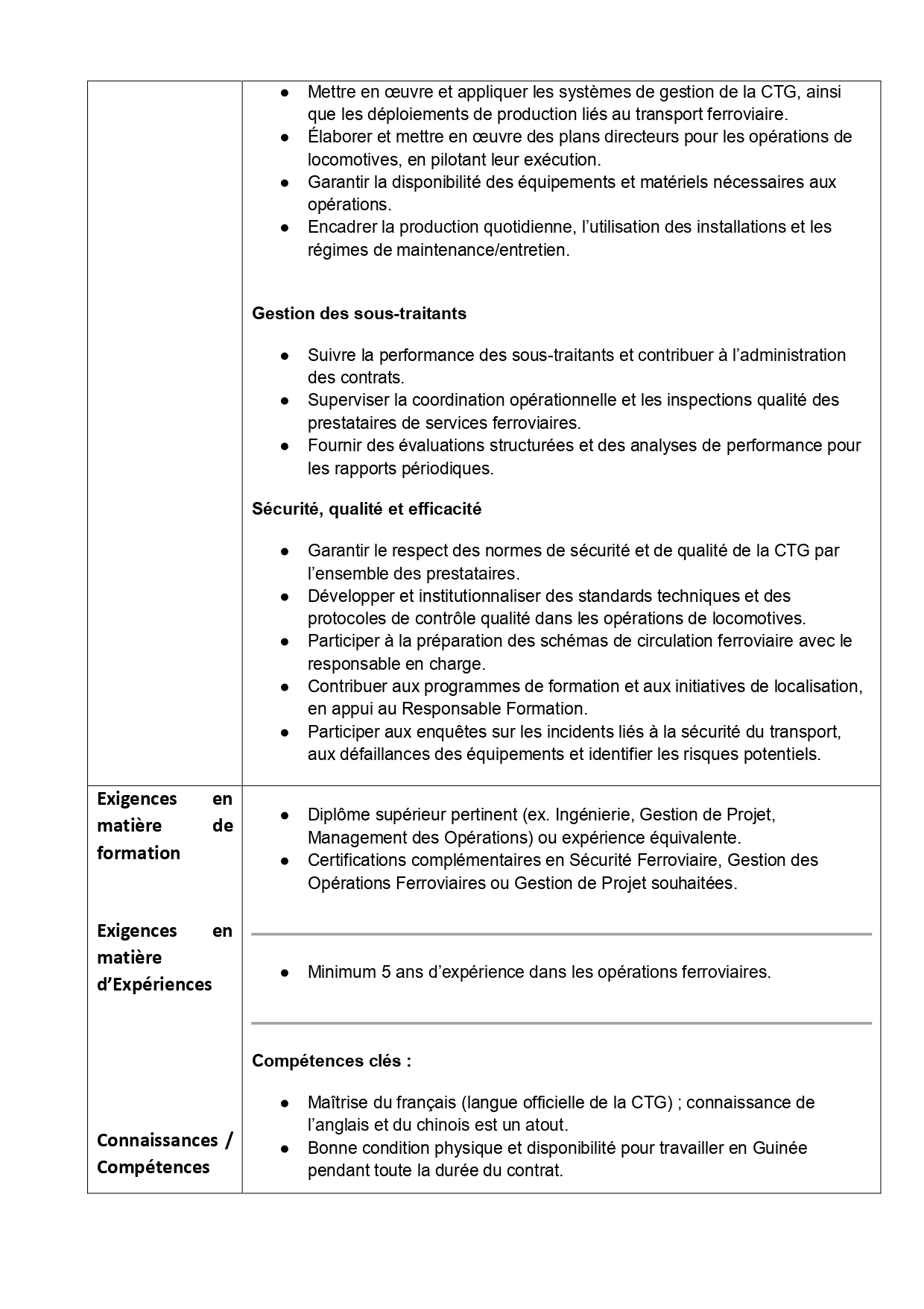 > Avis de recrutement d'un Superviseur des Opérations de Locomotives