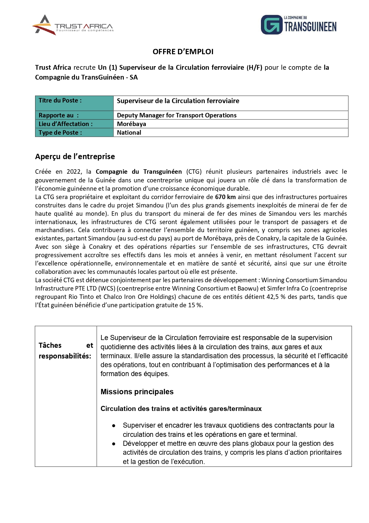 > Avis de recrutement d'un Superviseur de la Circulation ferroviaire