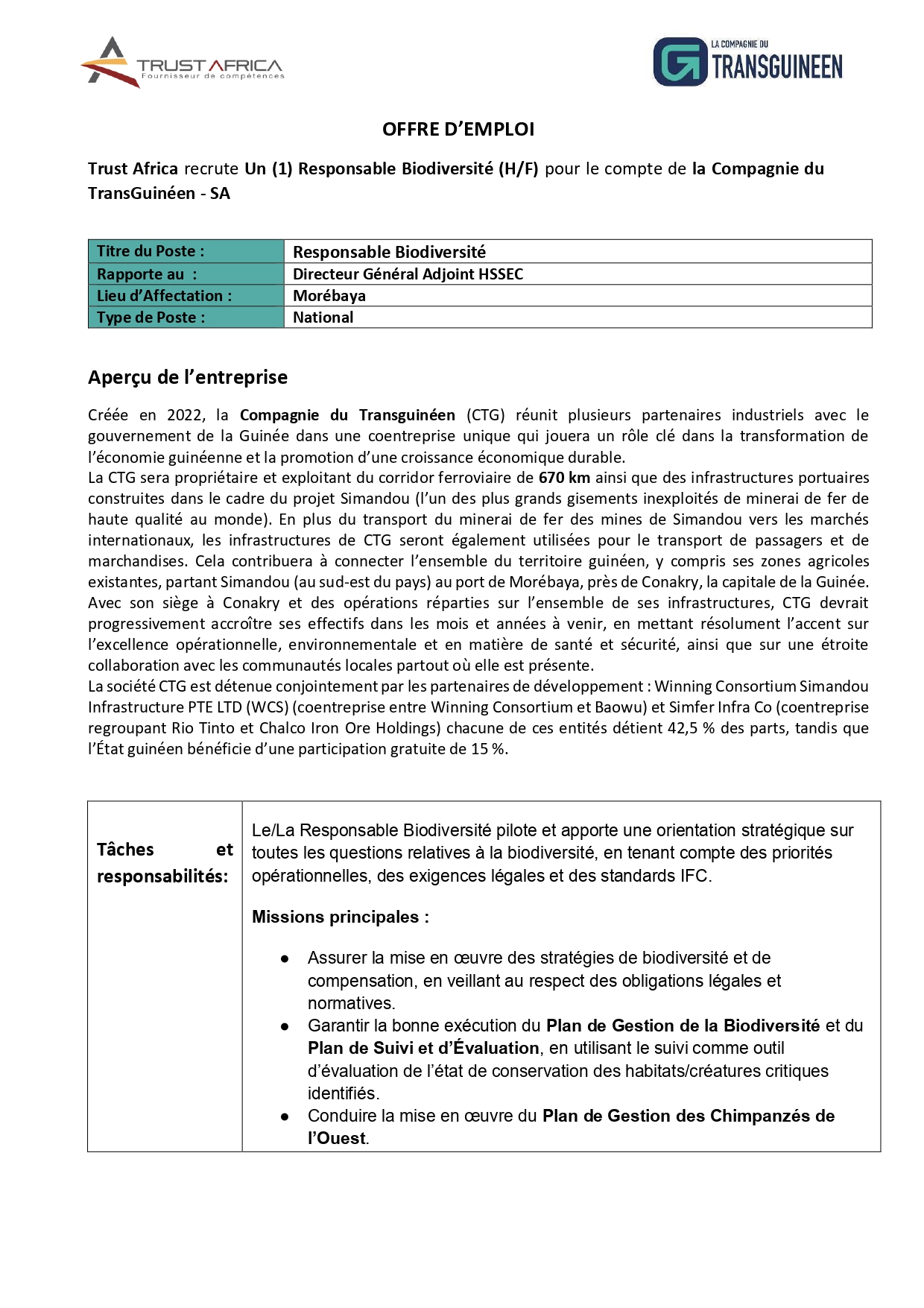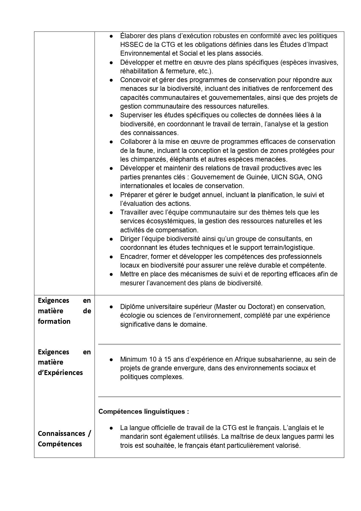 > Avis de recrutement d'un Responsable Biodiversité