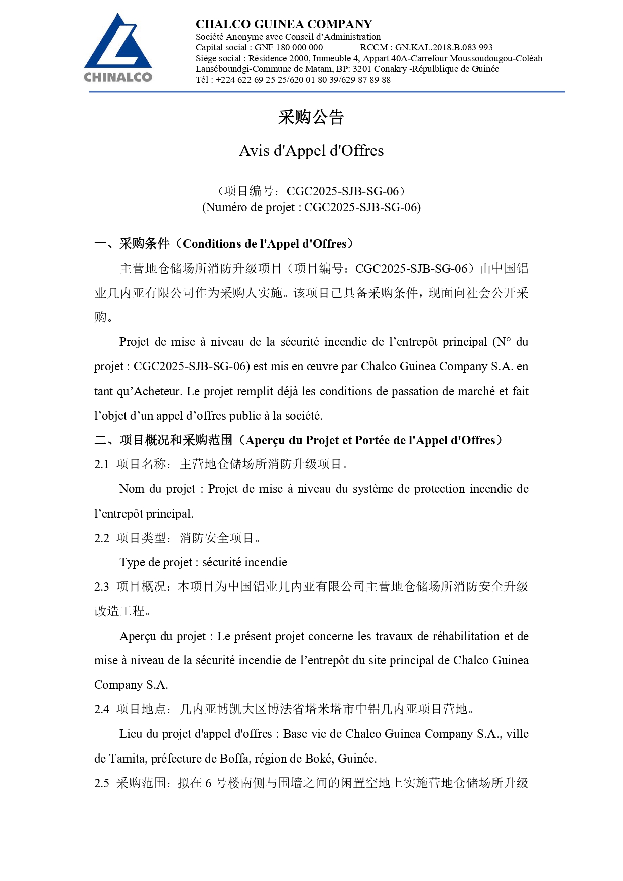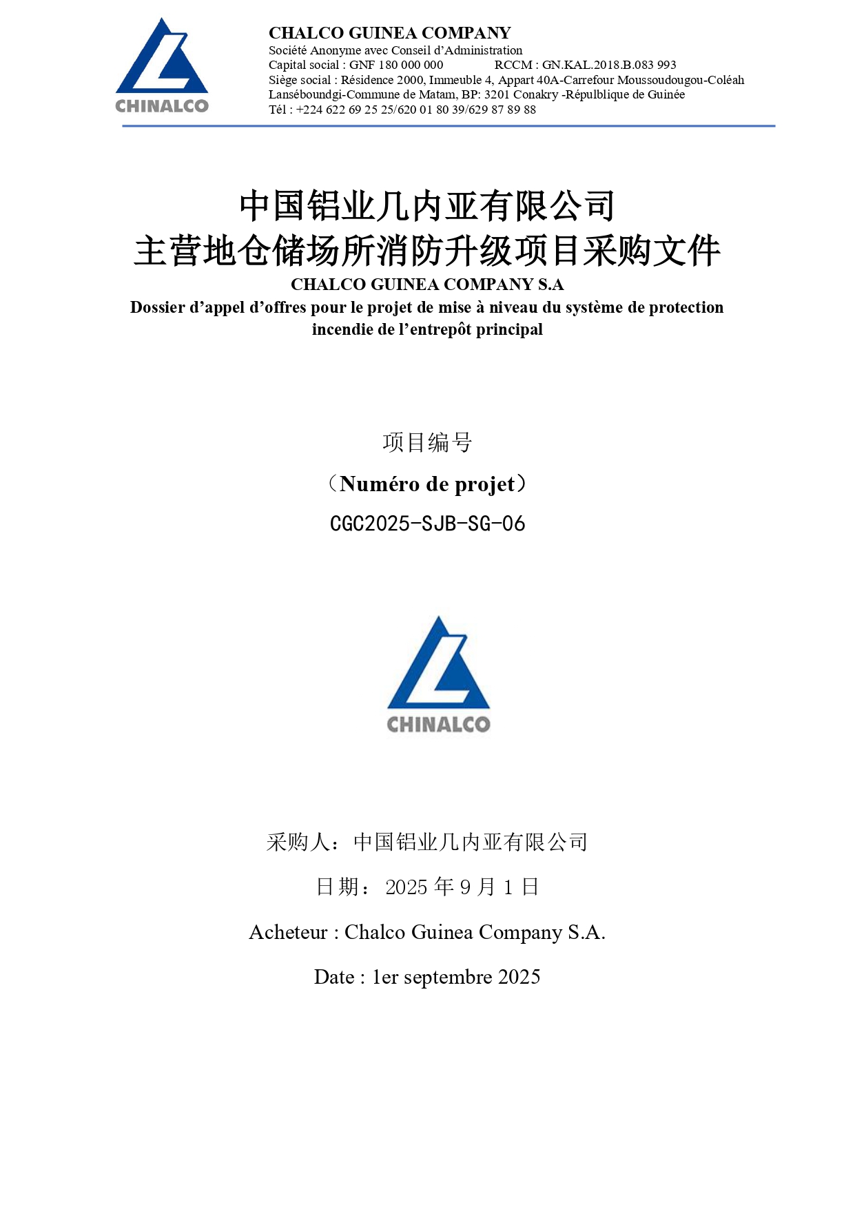 > Dossier d’appel d’offres pour le projet de mise à niveau du système de protection incendie de l’entrepôt principal
