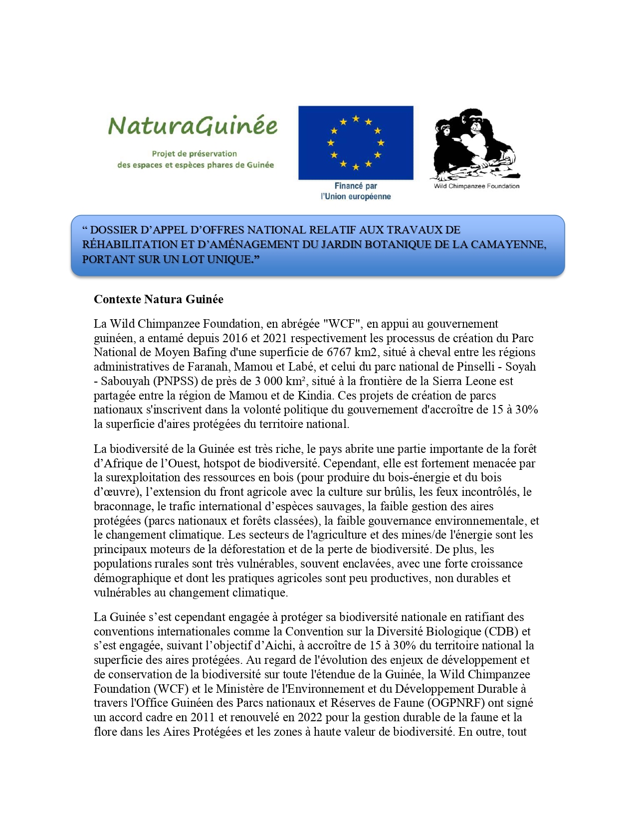 > DOSSIER D’APPEL D’OFFRES NATIONAL RELATIF AUX TRAVAUX DE RÉHABILITATION ET D’AMÉNAGEMENT DU JARDIN BOTANIQUE DE LA CAMAYENNE, PORTANT SUR UN LOT UNIQUE