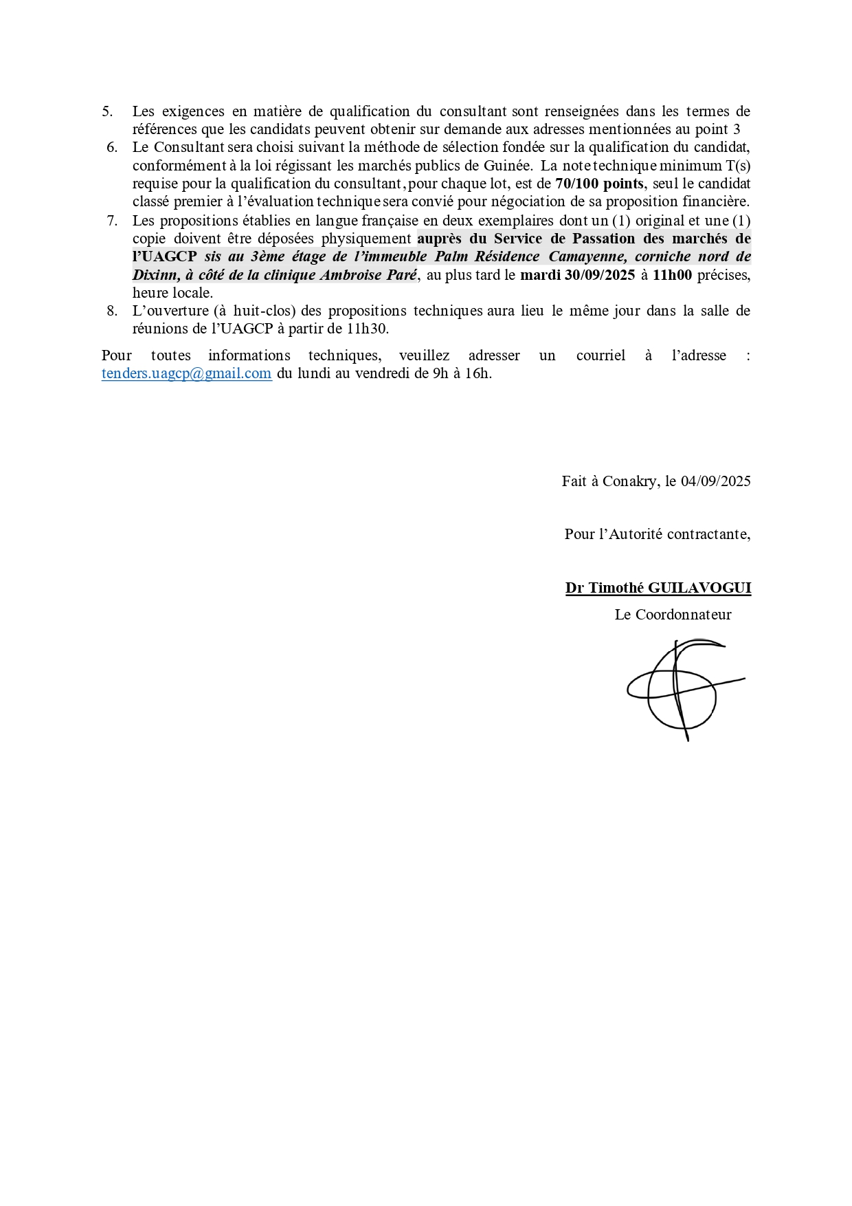 > AVIS A MANIFESTATION D’INTERETS POUR LA SELECTION DE DEUX CONSULTANTS INDIVIDUELS POUR L’ELABORATION DES PROCEDURES DE GESTION LOGISTIQUE DE L’ANSS (LOT 1) LA FORMATION DE 10 CADRES DES LABORATOIRES CENTRAUX EN BIO- INFORMATIQUE A CONAKRY (LOT2)