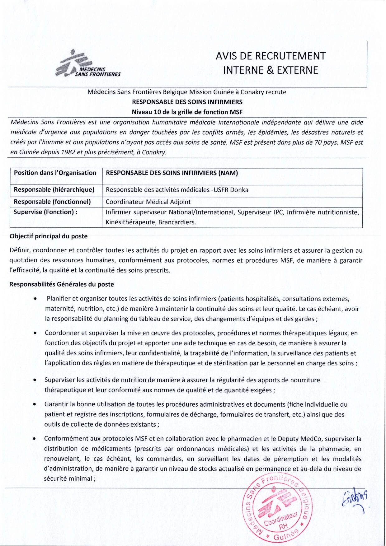 > Avis de recrutement d'un responsable des soins infirmiers (NAM)