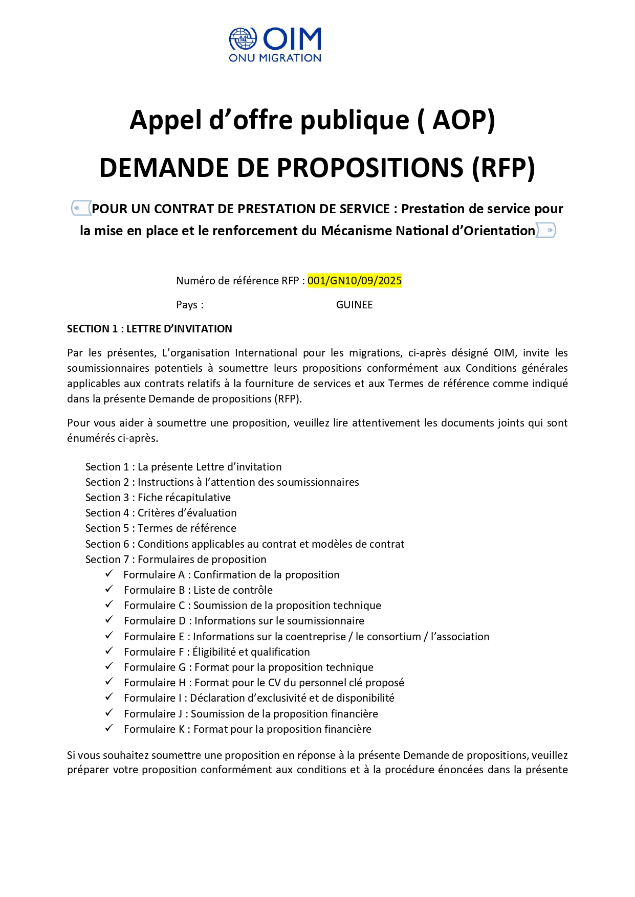 > DEMANDE DE PROPOSITIONS (RFP) POUR La Prestation de service pour la mise en place et le renforcement du Mécanisme National d’Orientation