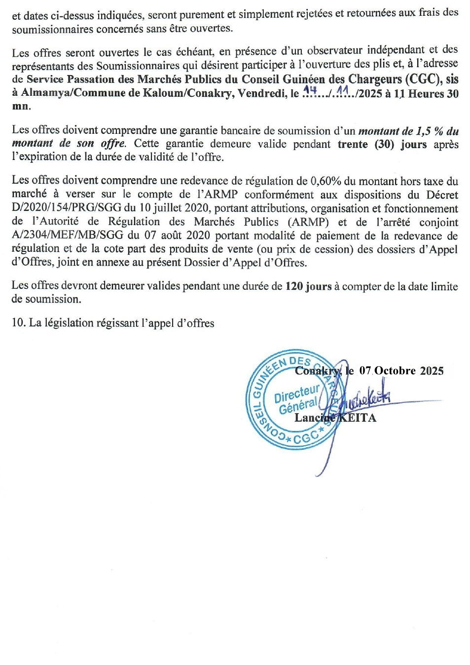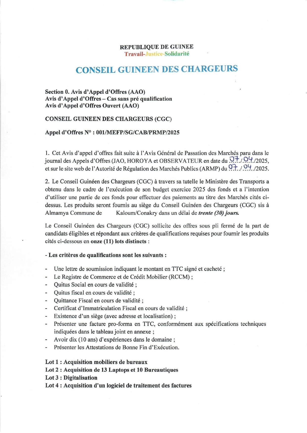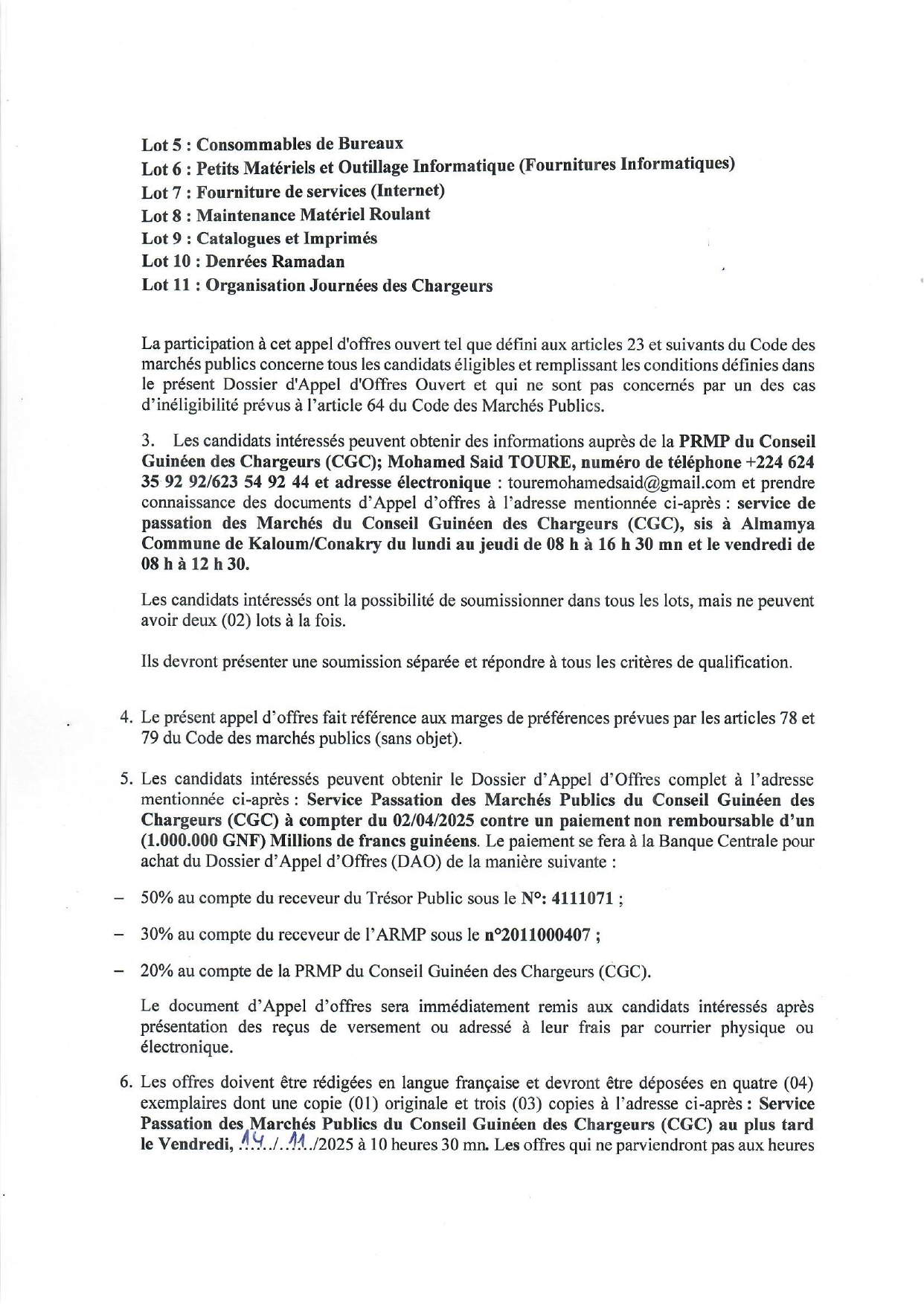 > Avis d'appel d'offres ouvert pour fournitures en 11 lots