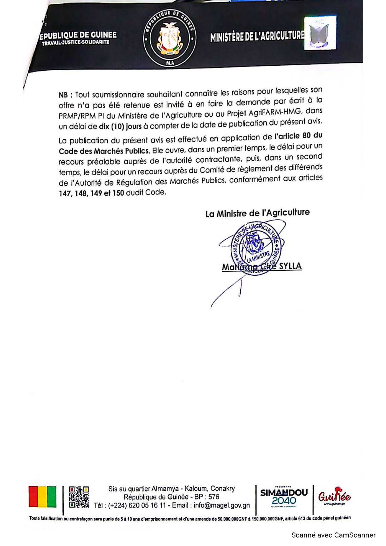 > Avis d'attribution provisoire: Travaux d'aménagement de 100 Ha de la plaine de Doumoukhoura et de 45 Ha de la plaine de Coucoudara 2 soit un total de 145 ha dans la commune rurale de Soyah...