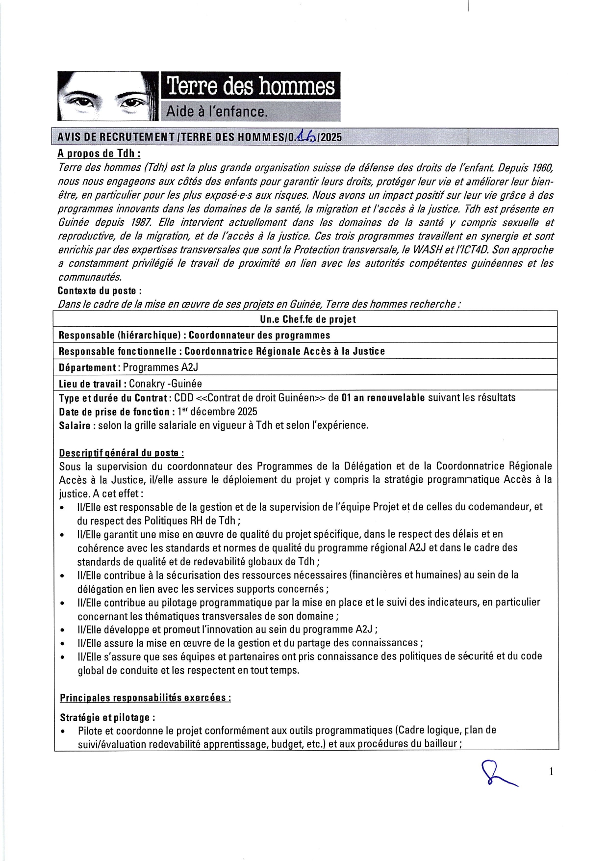 | Lieu d'affectation : | Guinée |