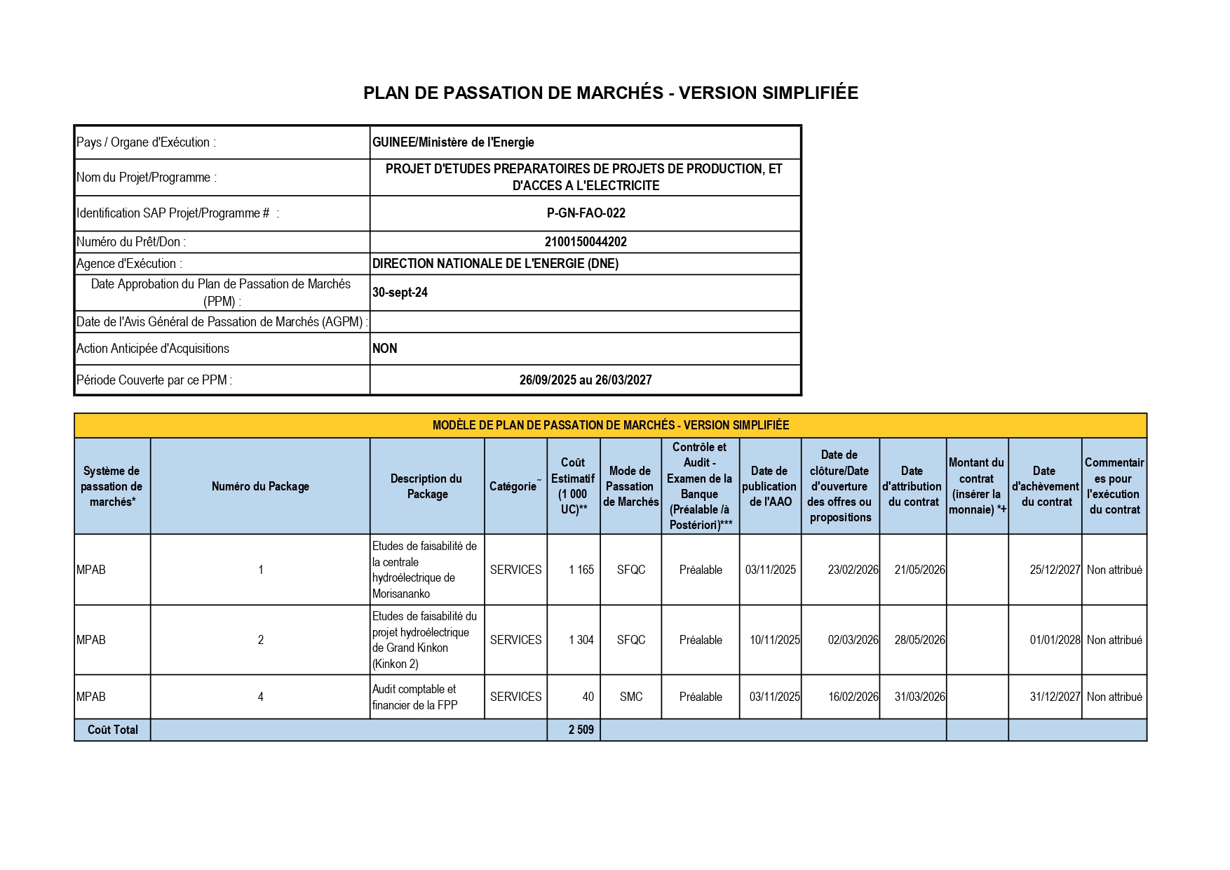 > PLAN DE PASSATION DE MARCHÉS - VERSION SIMPLIFIÉE