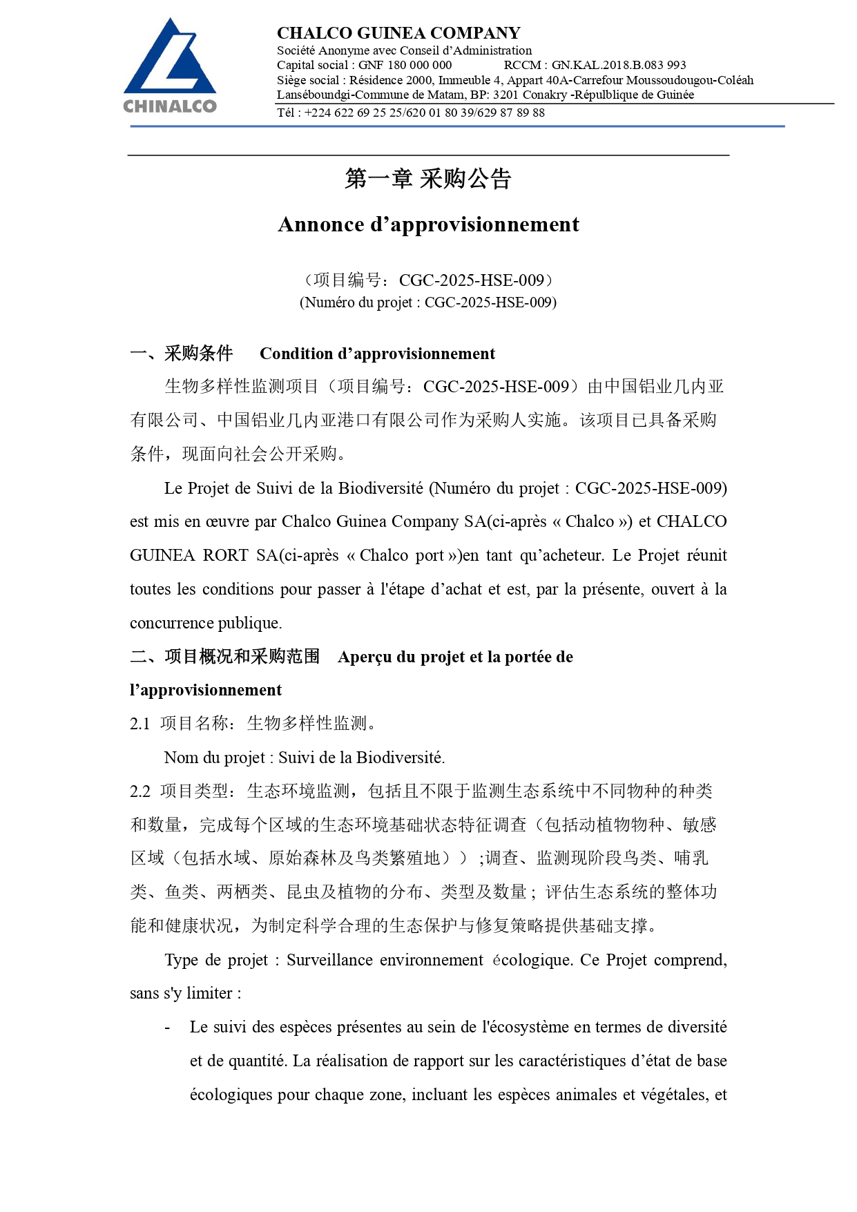 | Lieu d'affectation : | Guinée |