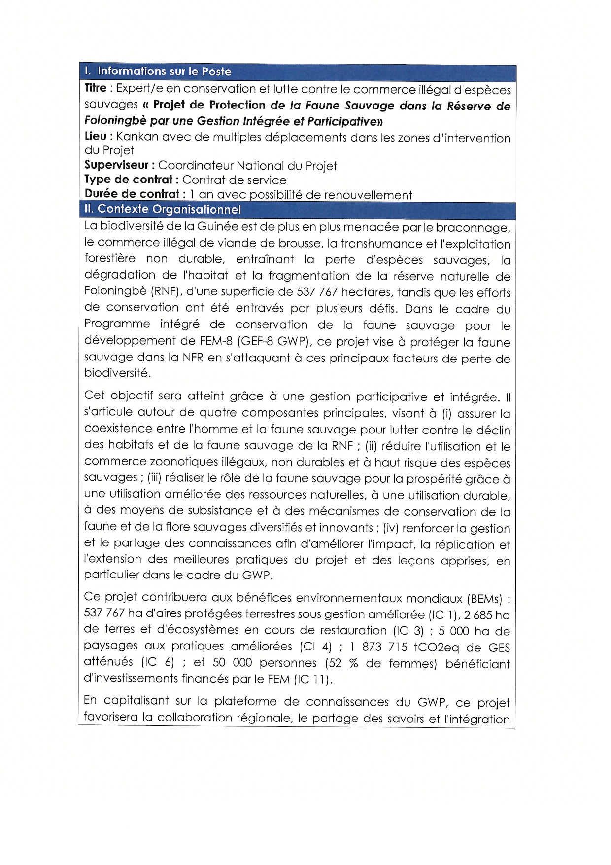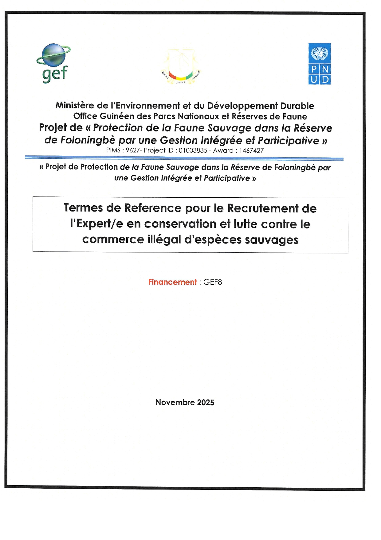> Termes de Reference pour le Recrutement de l'Expert/e en conservation et lutte contre le commerce illégal d'espèces sauvages
