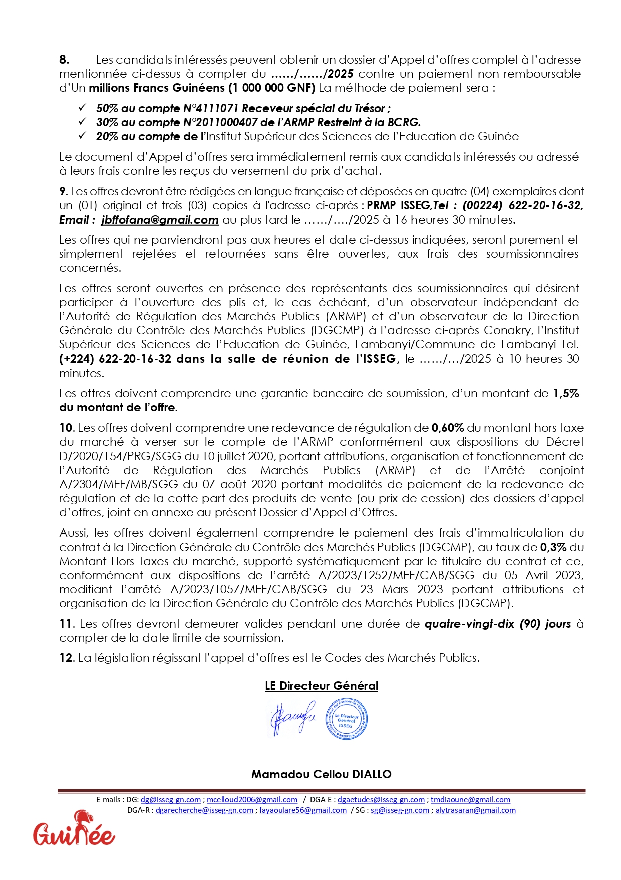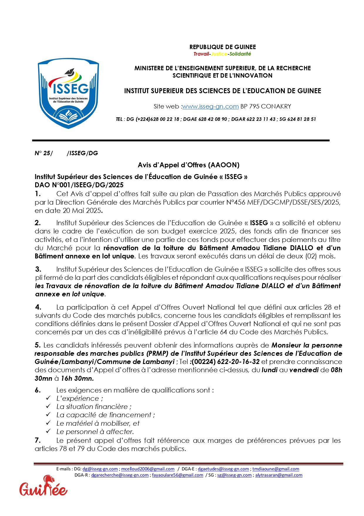 > Avis d'appel d'offres pour Le Marché pour la rénovation de la toiture du Bâtiment Amadou Tidiane DIALLO et d’un Bâtiment annexe en lot unique