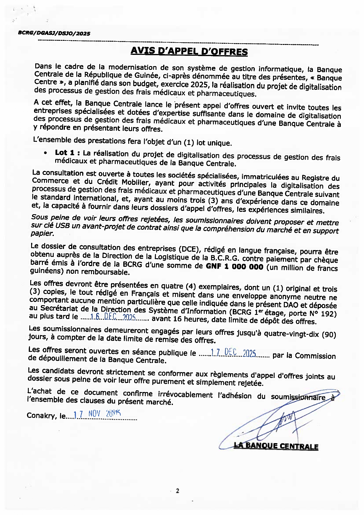 > Avis d'appel d'offres pour la réalisation du projet de digitalisation des processus de gestion des frais médicaux et pharmaceutiques