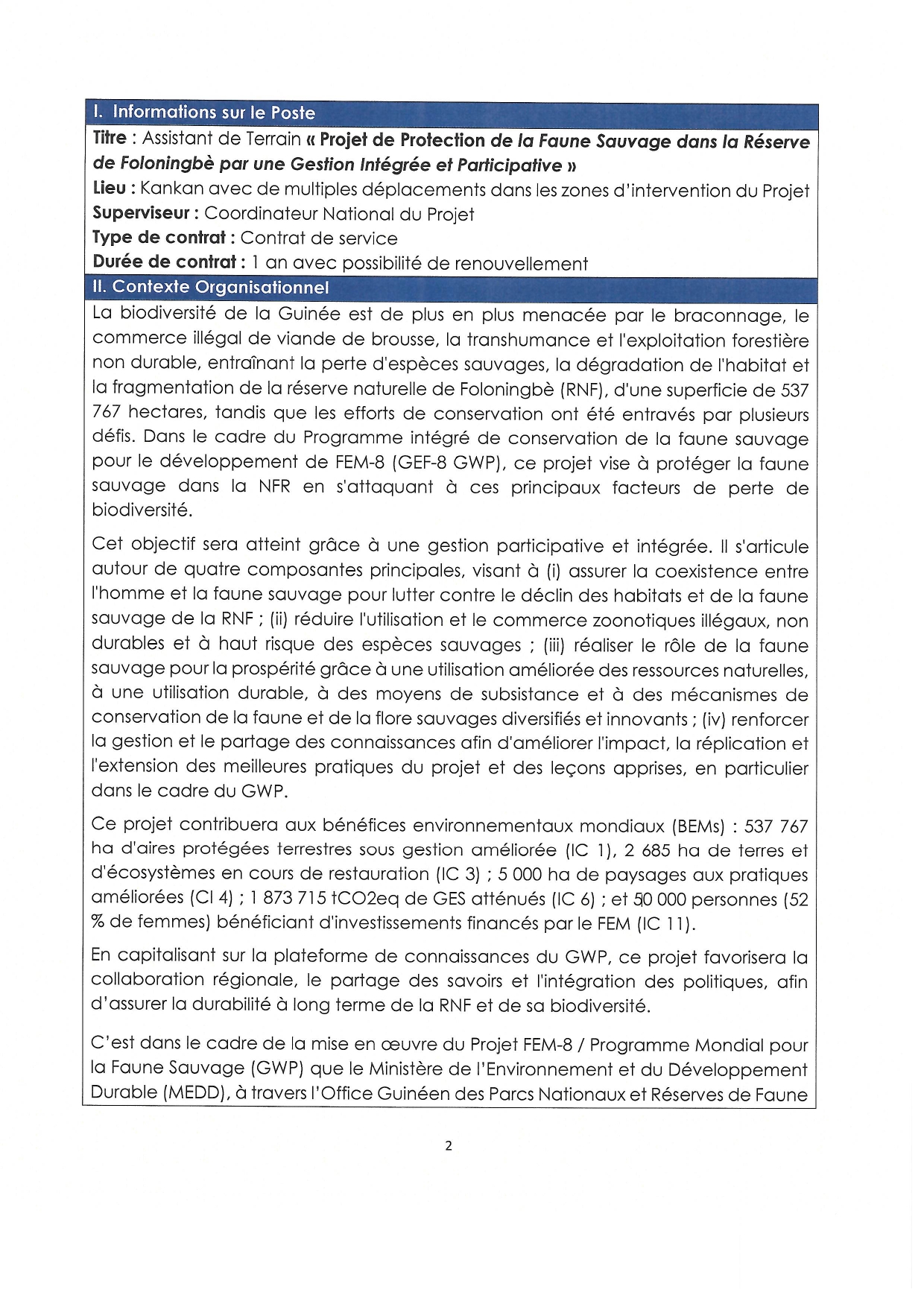 | Lieu d'affectation : | Guinée |