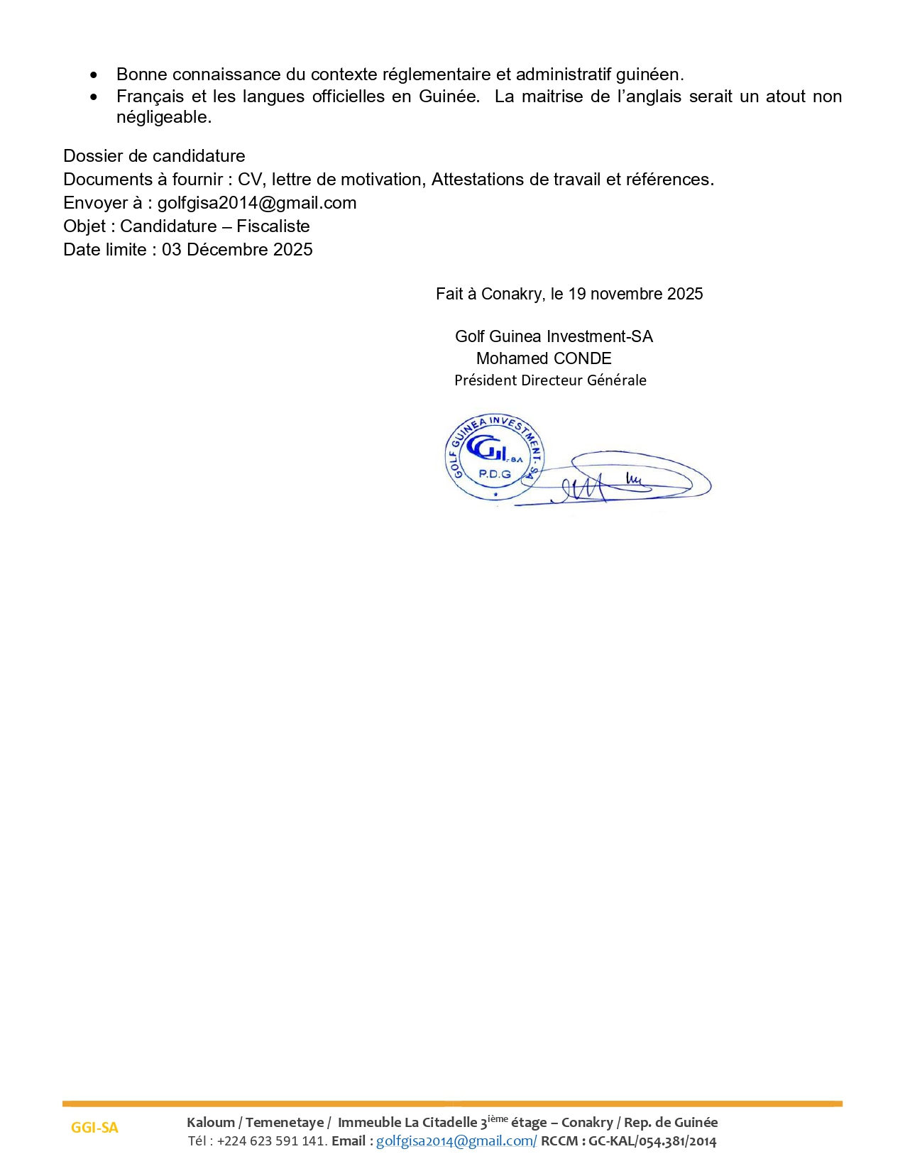 > AVIS DE RECRUTEMENT D’UN(E) FISCALISTE