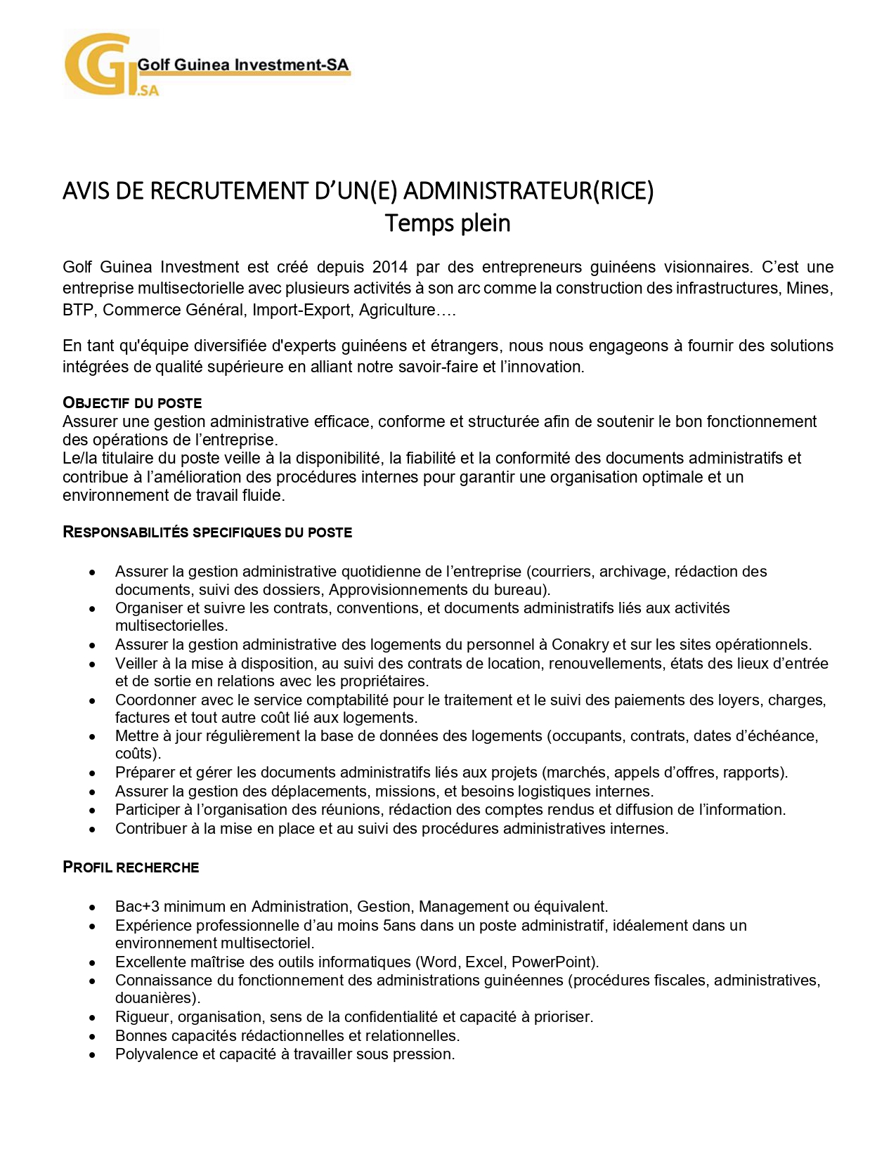 > AVIS DE RECRUTEMENT D’UN(E) ADMINISTRATEUR(RICE)