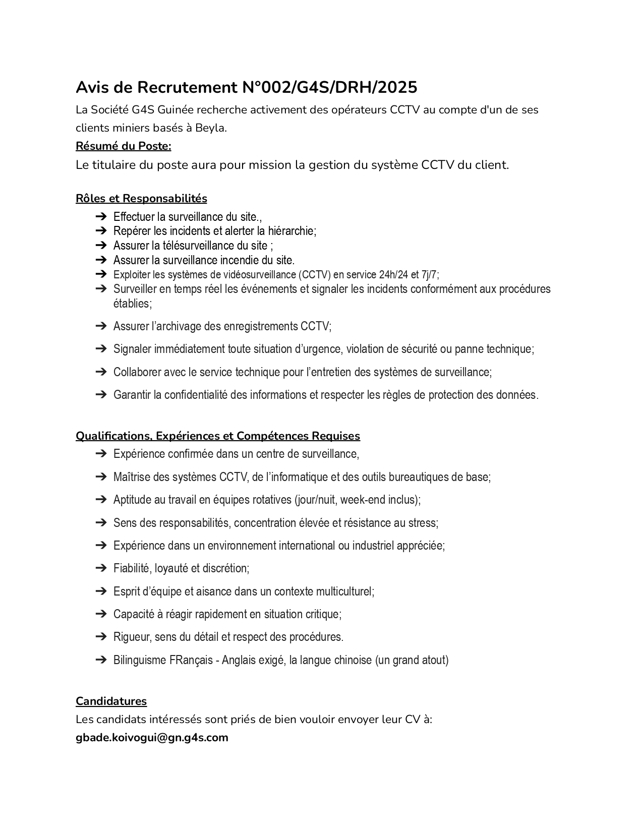 > Avis de recrutement d'opérateurs CCTV