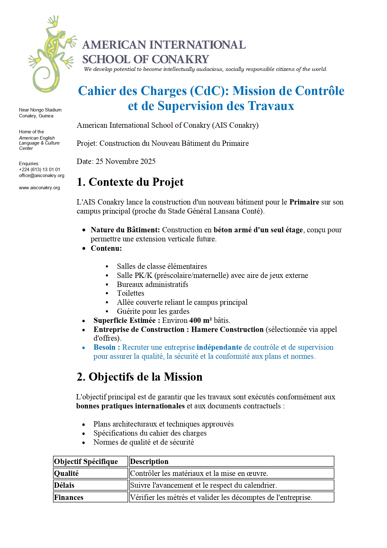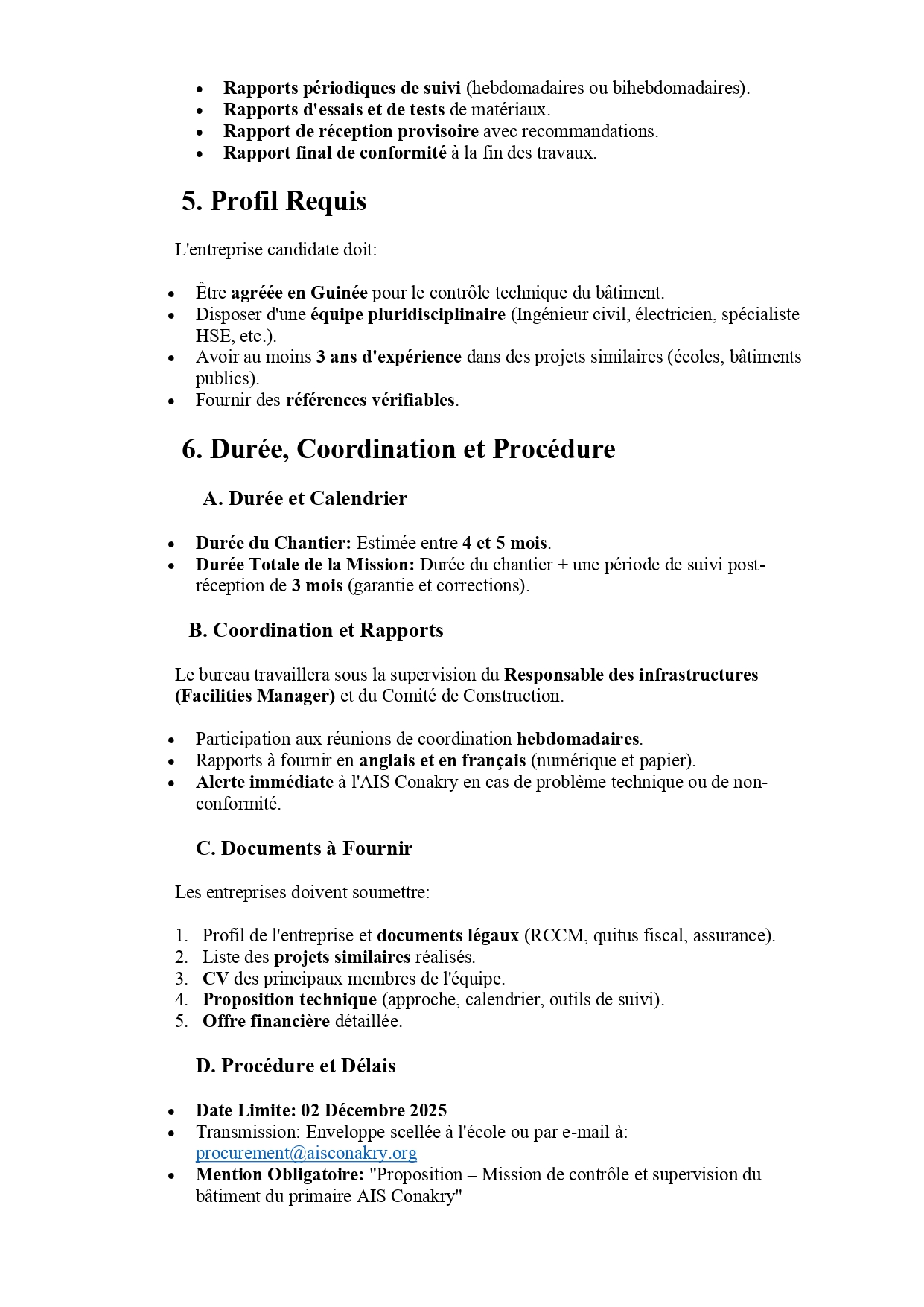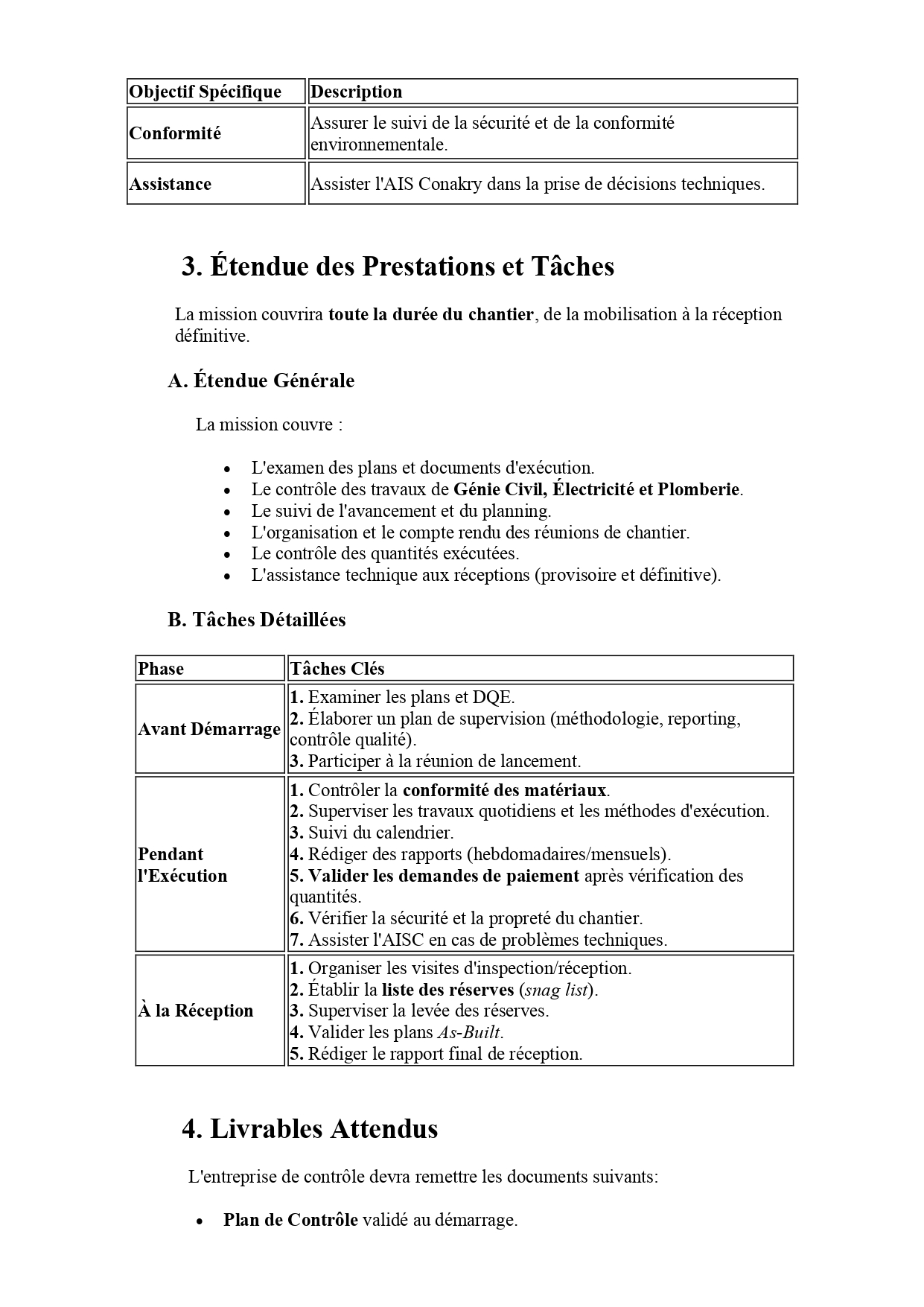> Appel d'offres pour Mission de Contrôle et de Supervision des Travaux