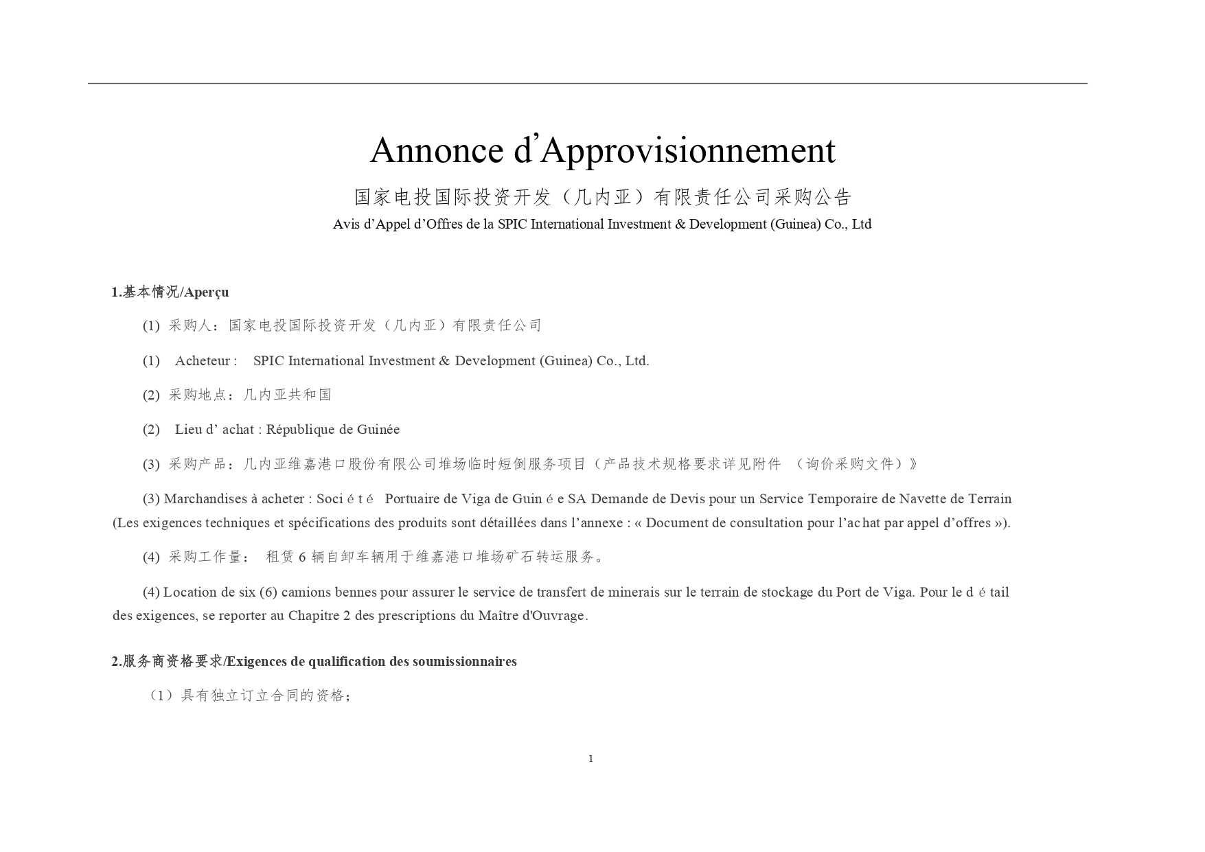 > Avis d'appel d'offres pour le recrutement de Société Portuaire de Viga de Guinée SA Demande de Devis pour un Service Temporaire de Navette de Terrain