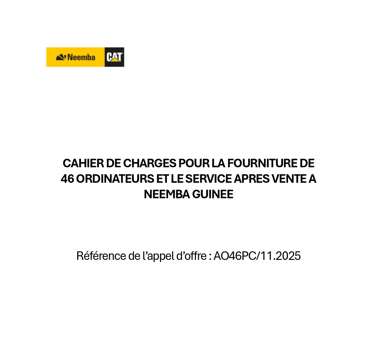 > AVIS D'APPEL D'OFFRES POUR LA FOURNITURE DE 46 ORDINATEURSET LE SERVICE APRES VENTE A NEEMBA GUINEE