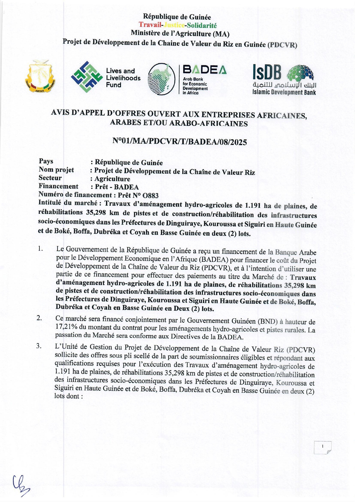> AVIS D’APPEL D’OFFRES OUVERT AUX ENTREPRISES AFRICAINES, ARABES ET/OU ARABO-AFRICAINES