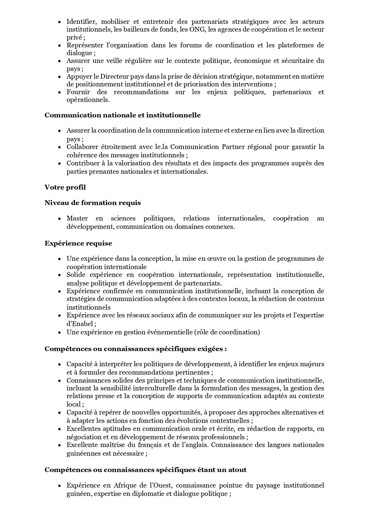 > Avis de recrutement d'un Conseiller.iére Stratégique et Communication (CSP – CO) (h/f/x) – Guinée