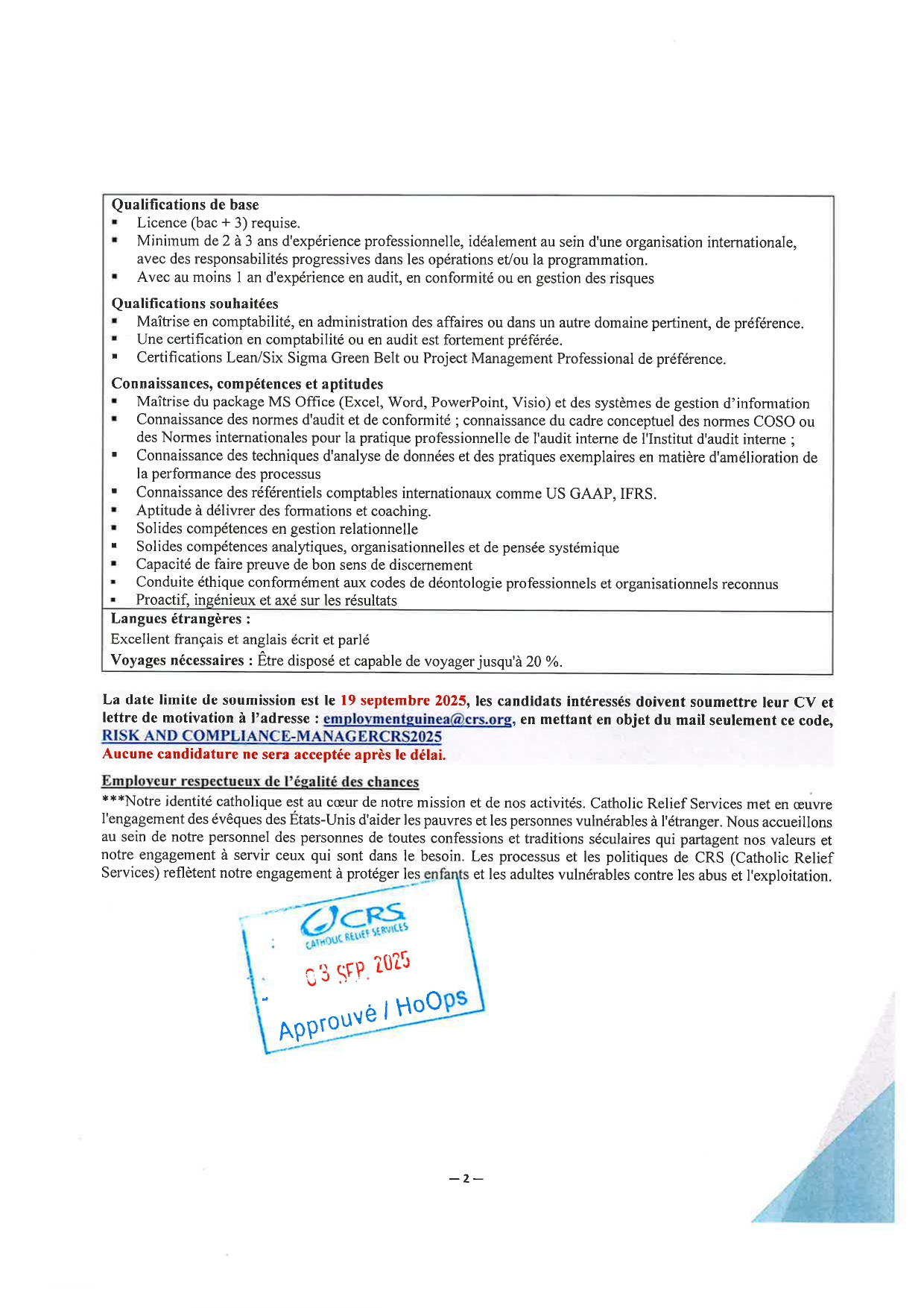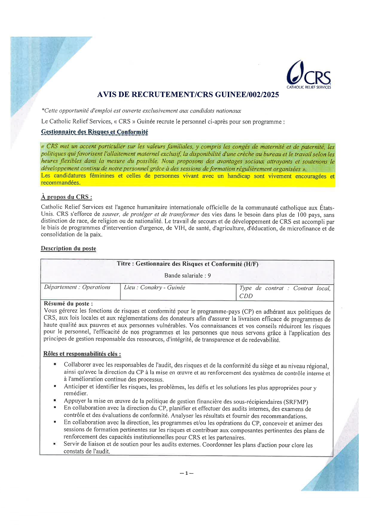 > Avis de recrutement d'un Gestionnaire des risques et conformité (H/F)