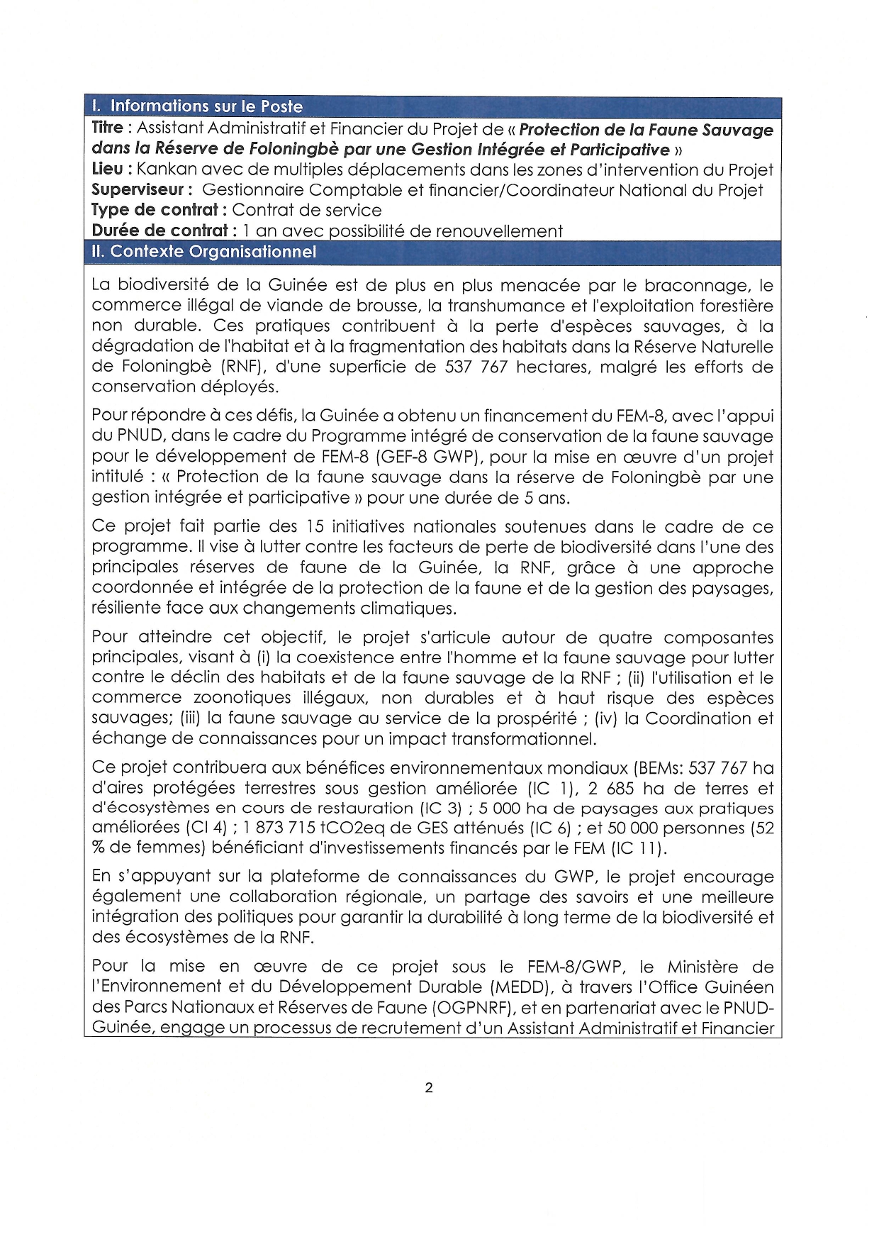 > Termes de Reference pour le Recrutement d'un Assistant Administratif et Financier