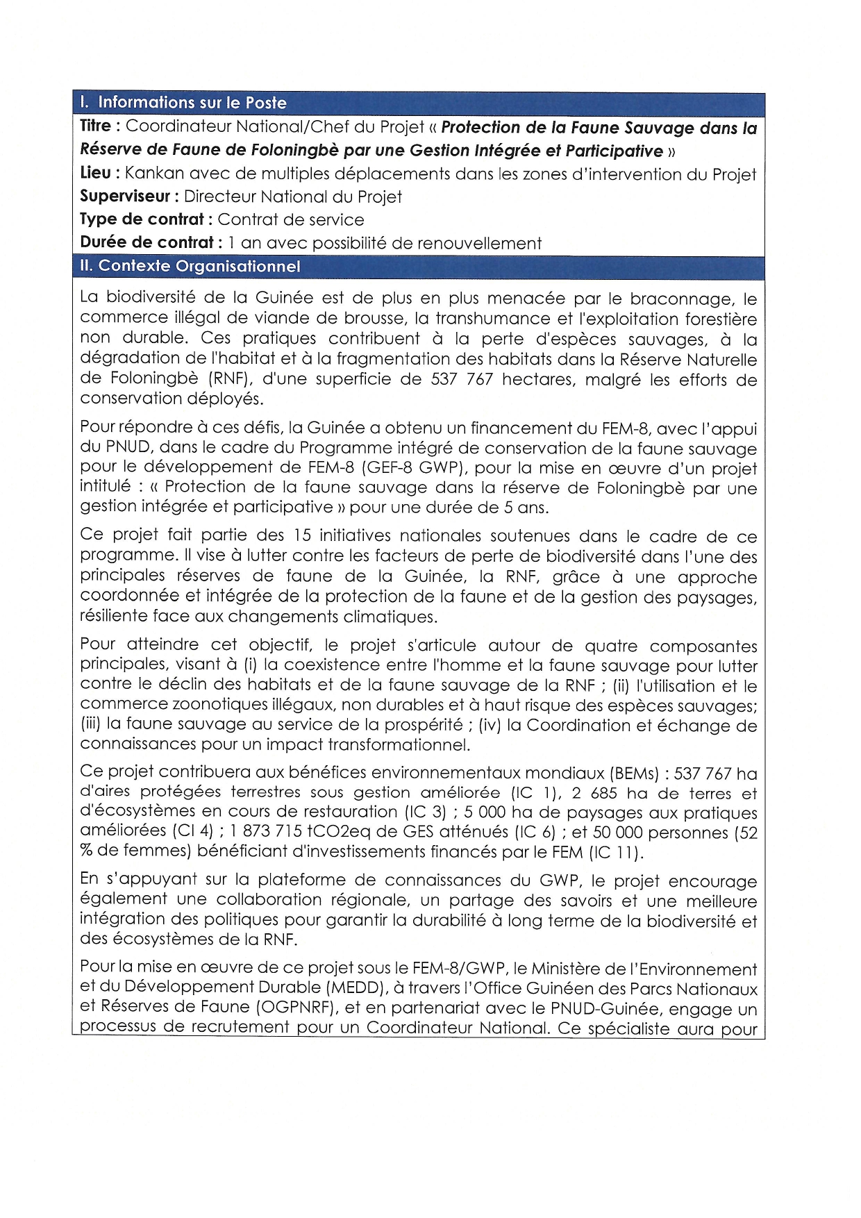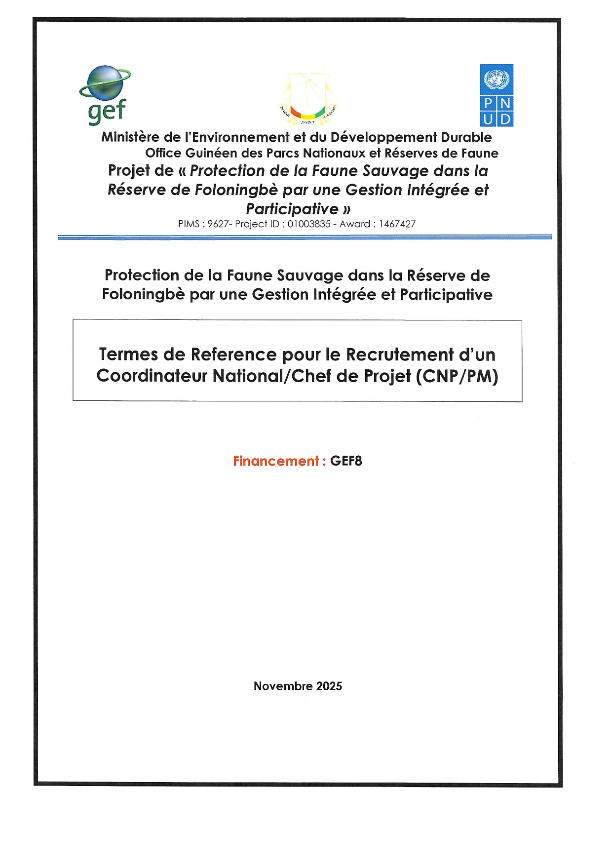 > Termes de Reference pour le Recrutement d'un Coordinateur National/Chef de Projet (CNP/PM)