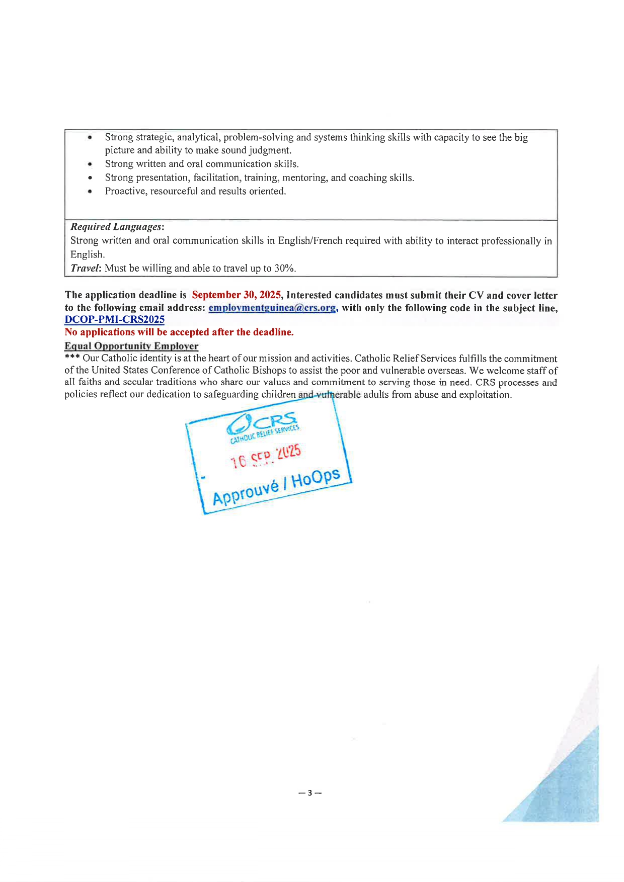 | Lieu d'affectation : | Guinée |
