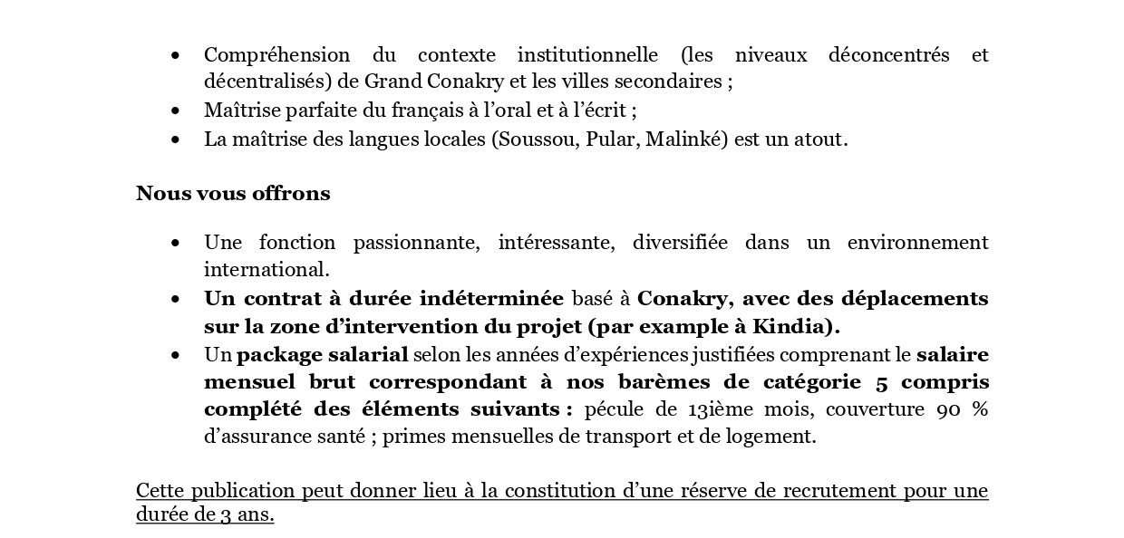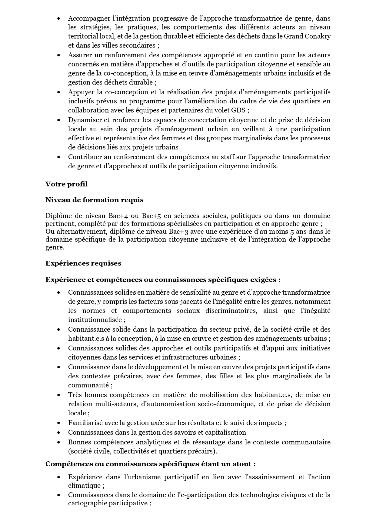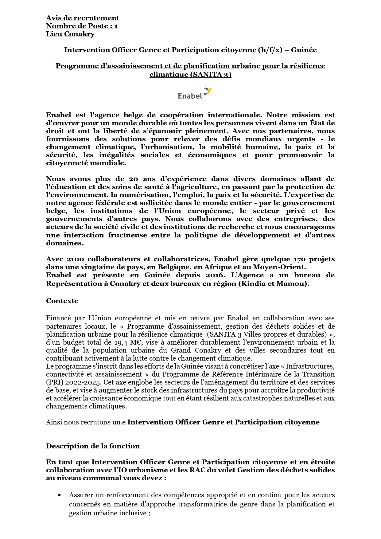 > Avis de recrutement d'un Intervention Officer Genre et Participation citoyenne (h/f/x) – Guinée